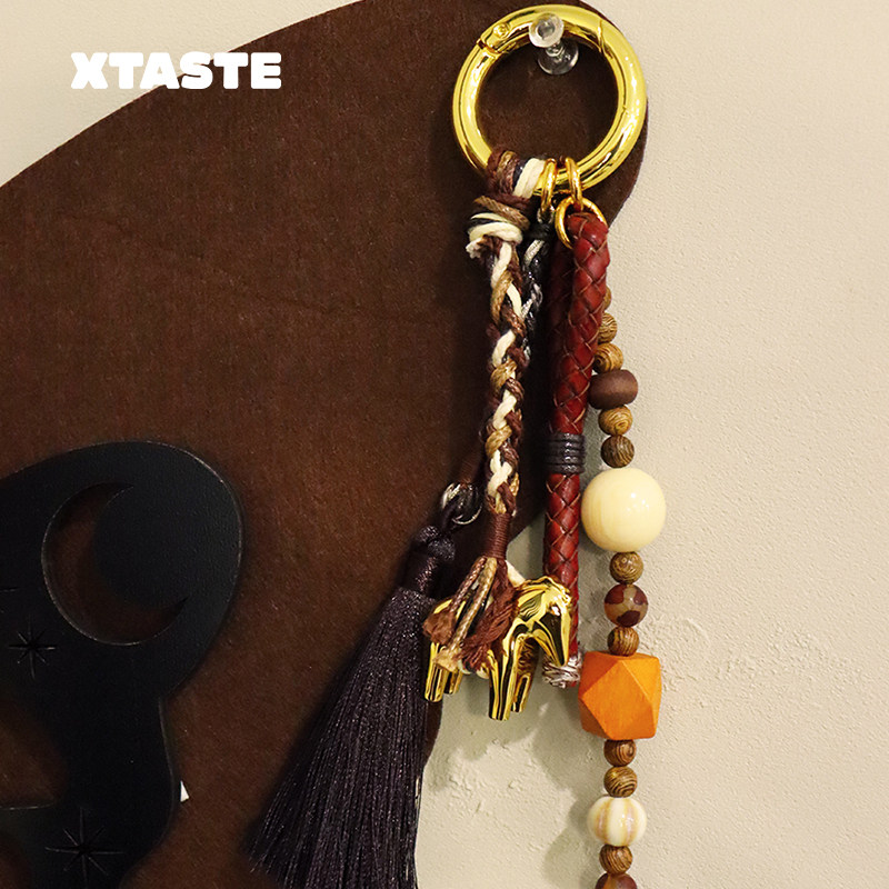 式 XTASTE 设计师款 项链吊坠 Picnique锁心人木马雕塑钥匙链 包挂