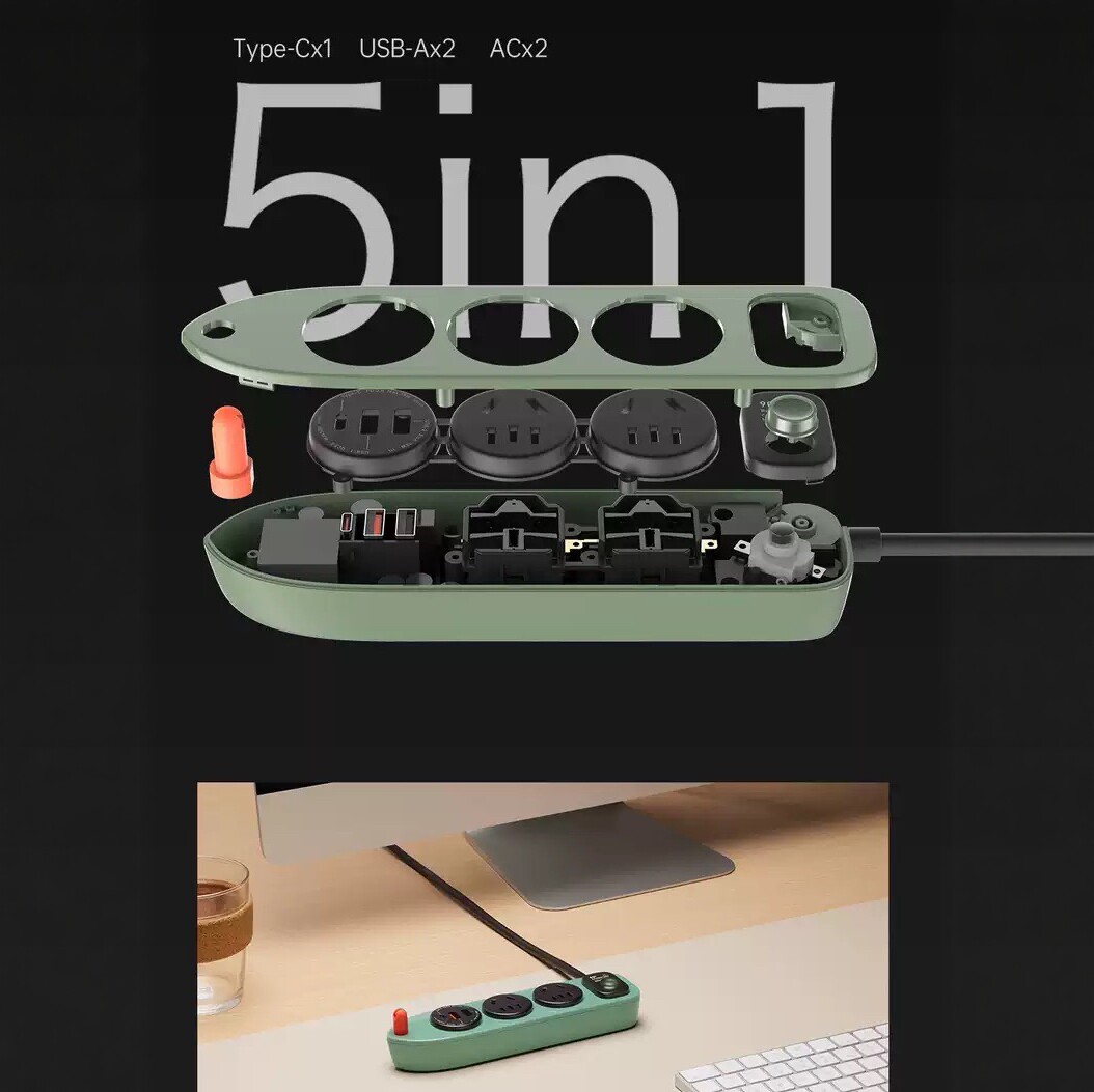 FIKLIK非理小轮船35W快充桌面插排插线板多孔充电器USB多功能插座