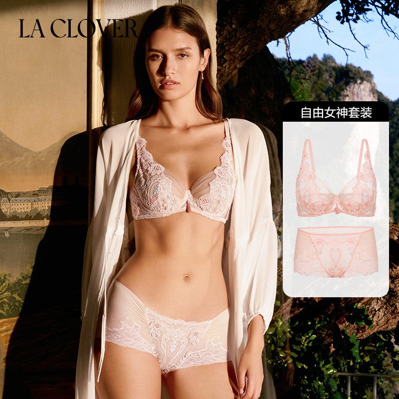 LACLOVER兰卡文自由女神立体刺绣薄杯文胸内裤 套装 女神杯套装由