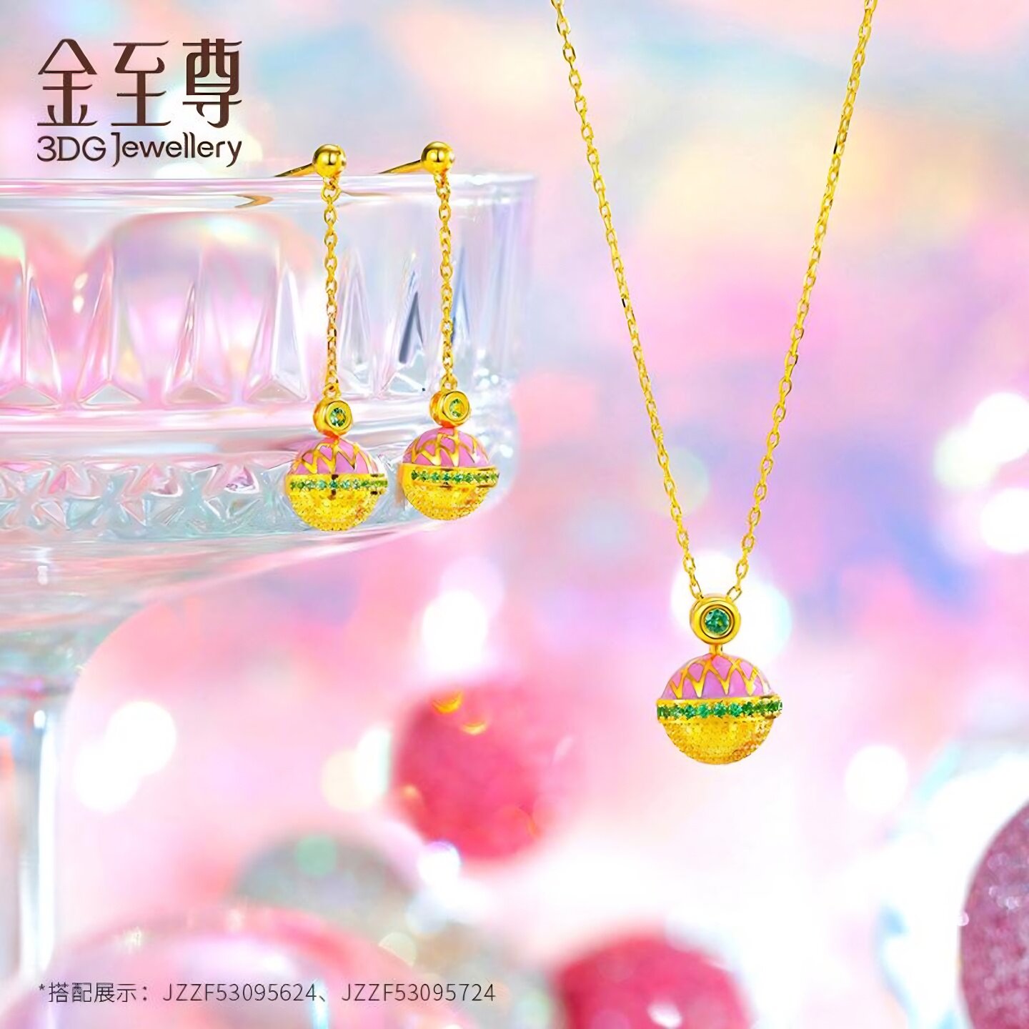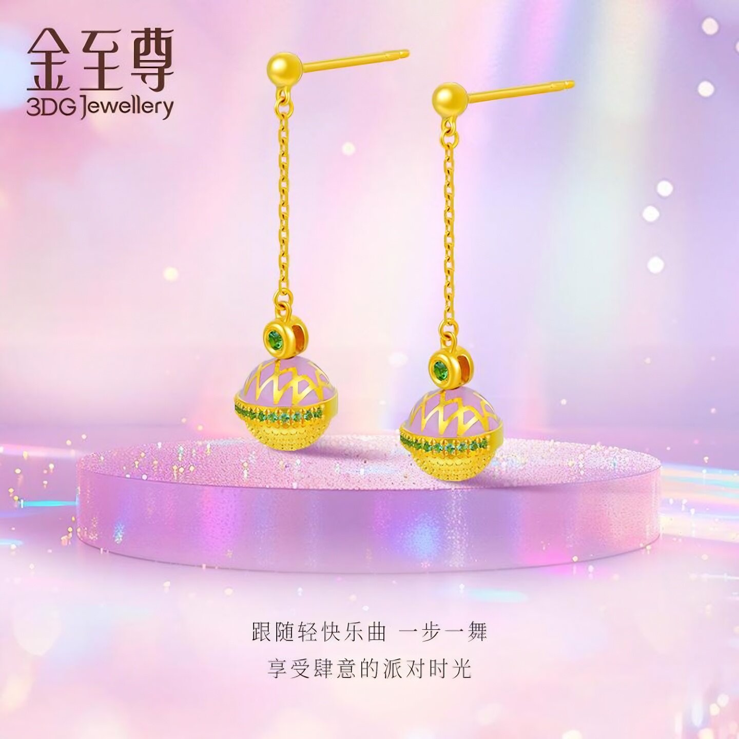 金至尊幻彩party黄金耳钉石榴石硬足金耳饰生日创意礼物黄金耳饰由
