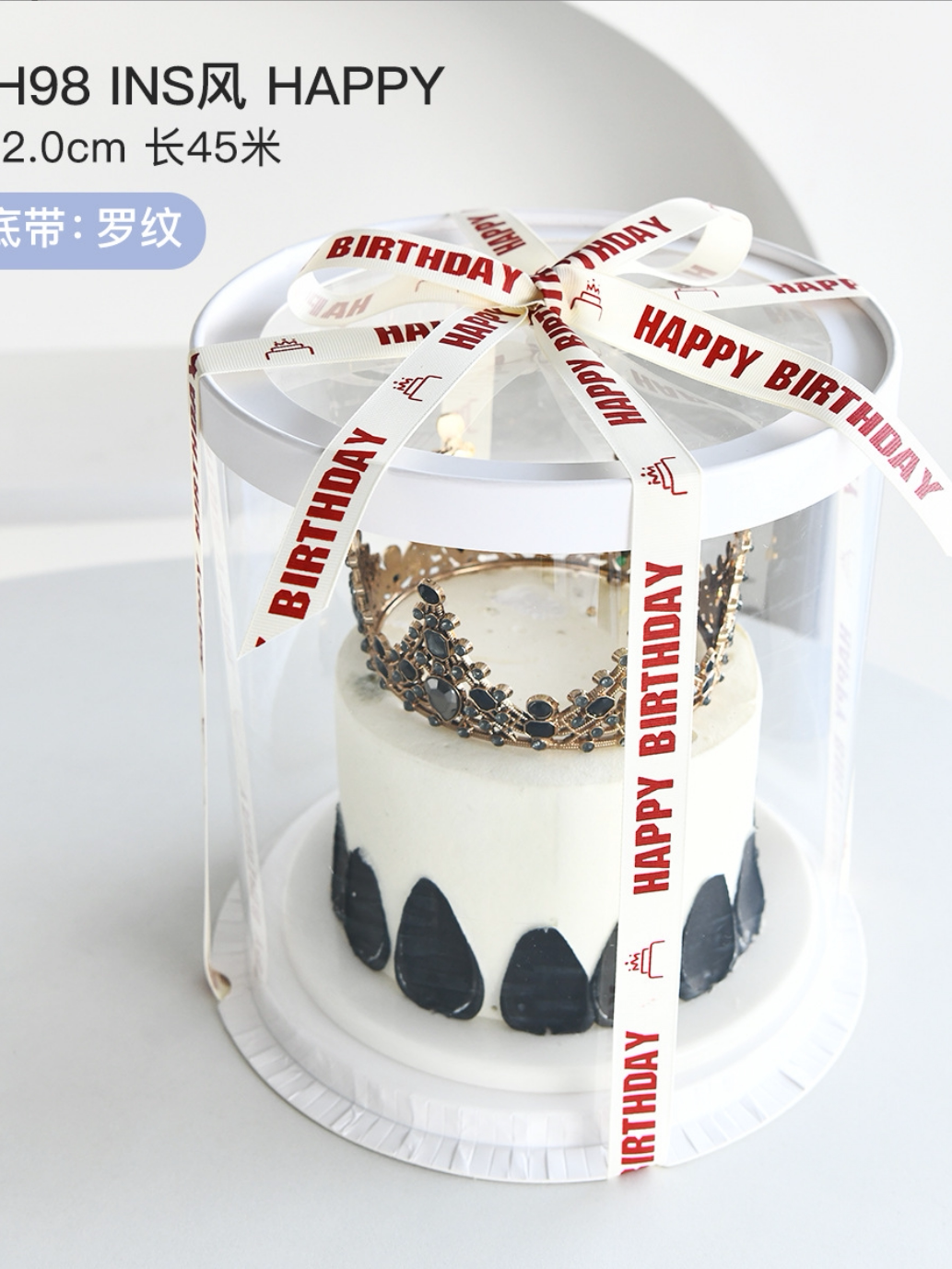 为您提供商品盒螺纹绑带 生日蛋糕盒丝带ins罗纹米白色英文彩带花束礼物盒包装的详细介绍,