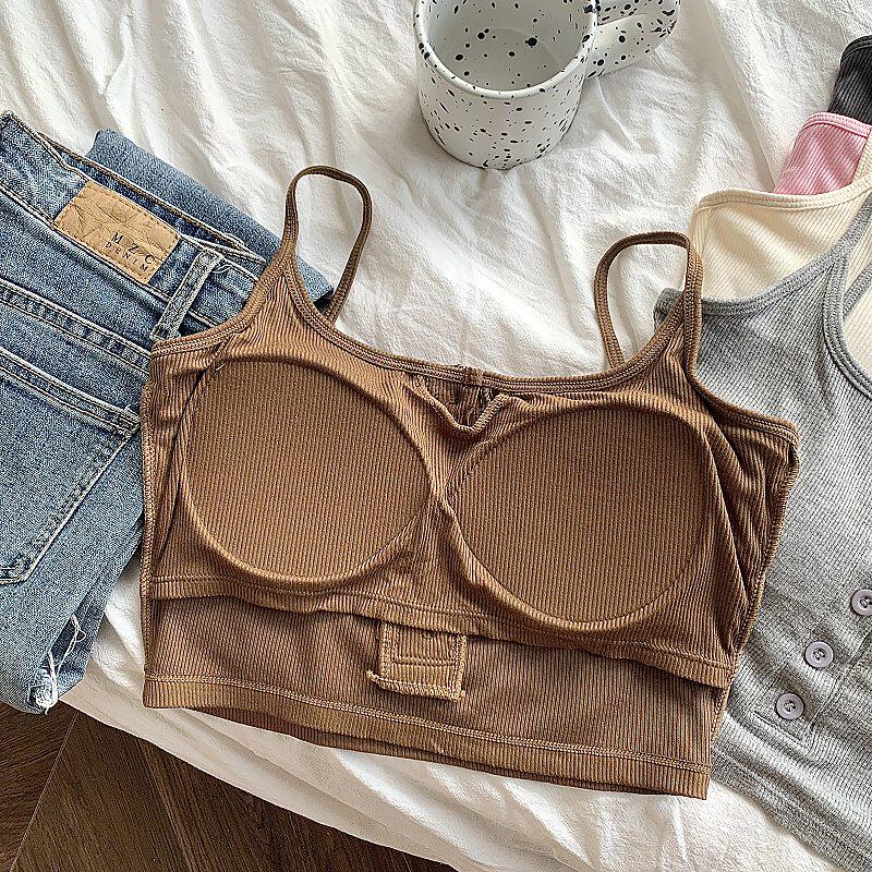 外穿 觅橘美背一字肩小吊带背心女带胸垫内搭内衣打底百搭夏季