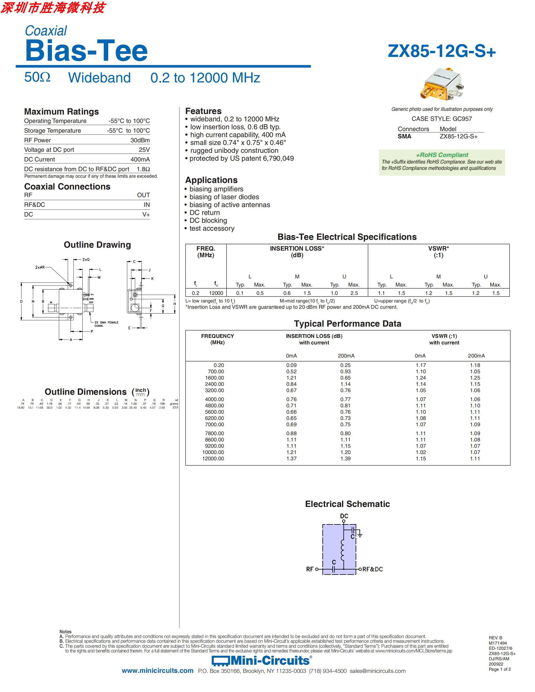 为您提供商品二手 0.2 25V 射频同轴偏置器 400mA 12G ZX85 MINI 12000MHz的详细介绍,