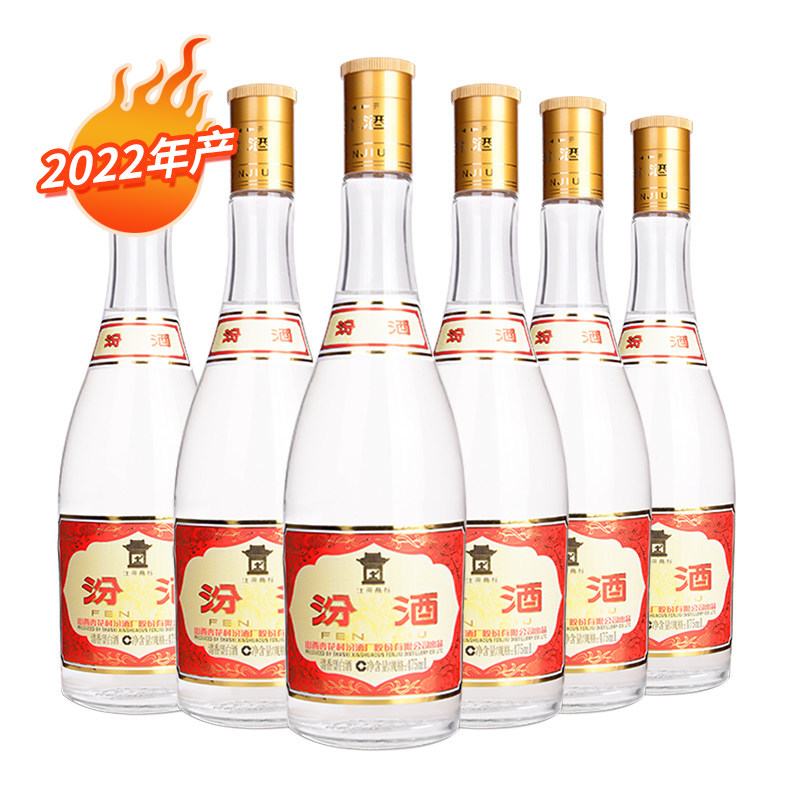 2022年老酒 汾酒53度黄盖汾酒475mlX6高度清香型白酒6瓶 2017由