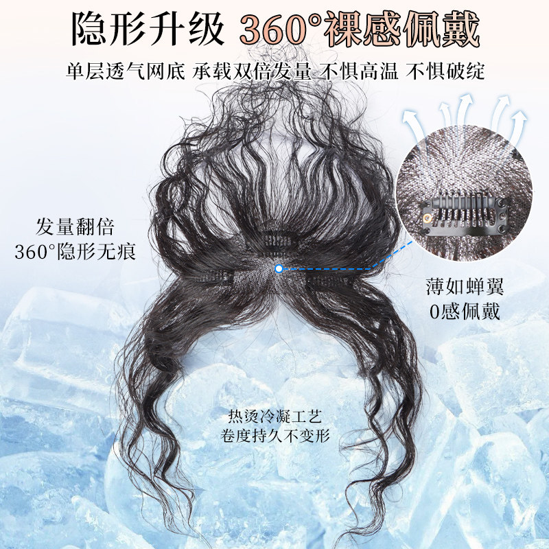 刘海片 高颅顶假发片女增发量蓬松真发遮头顶白发 双递针法式 美禾