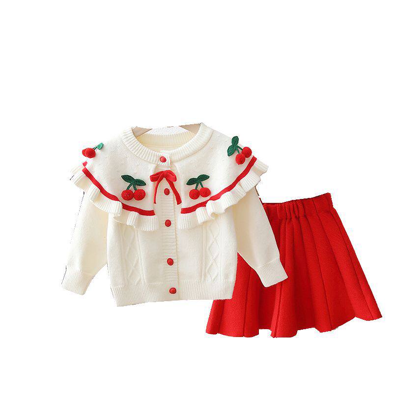 女童秋冬上衣裙子套装 针织衫 儿童毛衣公主风开衫 两件套 2025年新款