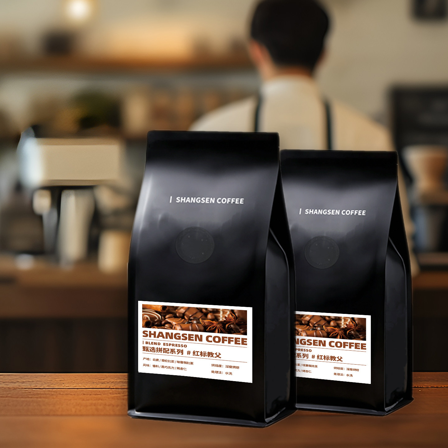 赏森红标教父意式 拿铁深烘香料黑巧克咖啡豆 拼配云南哥伦埃塞美式