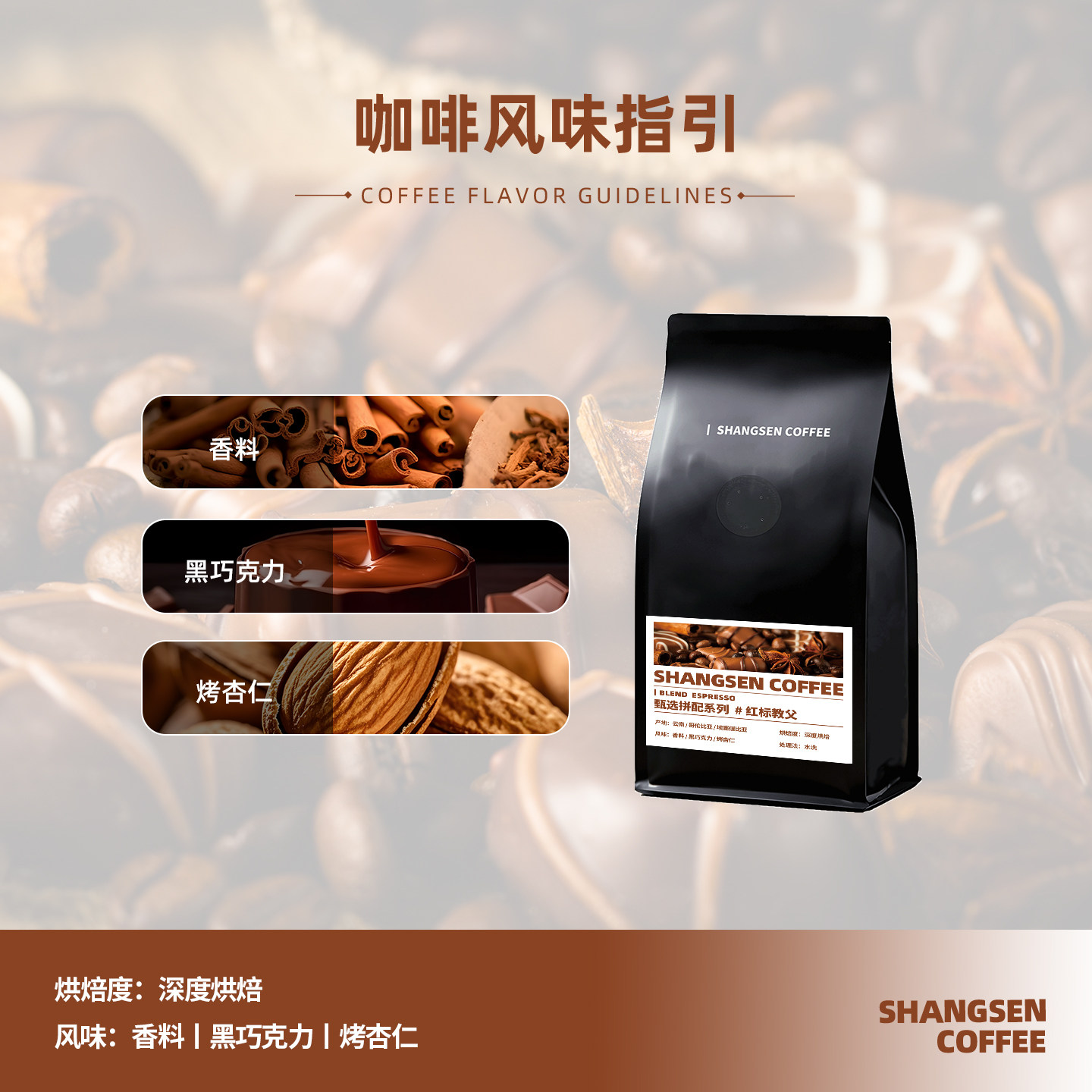 为您提供商品赏森红标教父意式 拿铁深烘香料黑巧克咖啡豆 拼配云南哥伦埃塞美式的详细介绍,