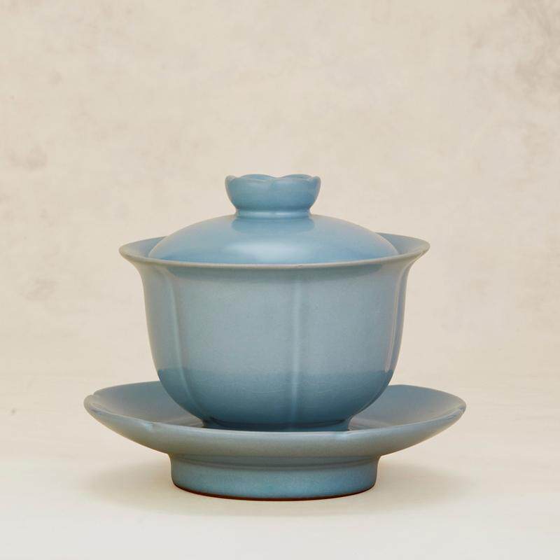 稀雀 汝窑六瓣葵口三才盖碗 山明汝瓷由