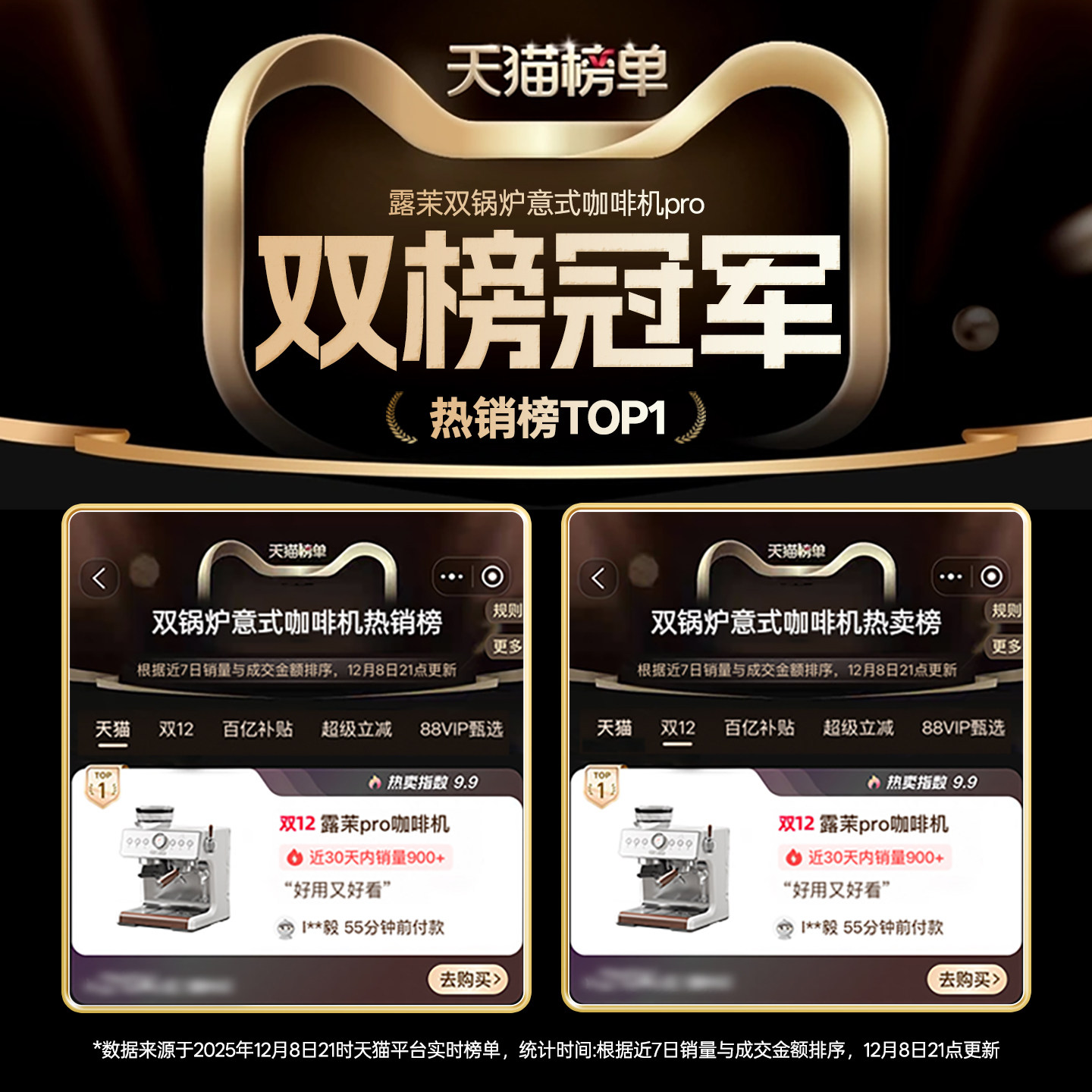 露茉Pro咖啡机家用小型半自动意式 研磨一体双泵双加热 补贴15%