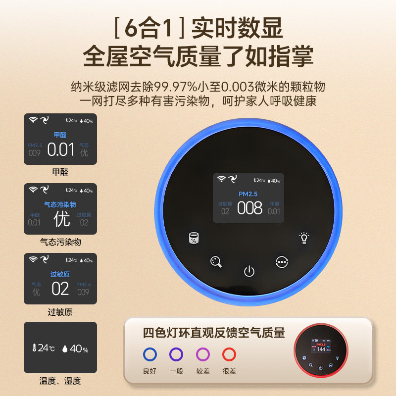 R8空气净化器家用除甲醛花粉过敏原宠物吸猫毛加湿净化一体机 美