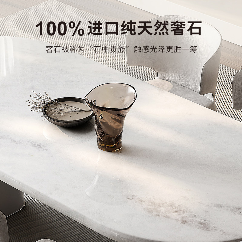 奶油进口高级感白色大理石椭圆餐桌 彼爱奢石餐桌现代简约法式
