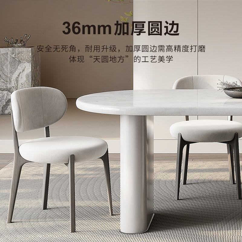 白冰玉天然大理石餐桌圆形家用轻奢高端进口定制奢石餐桌岩板意式