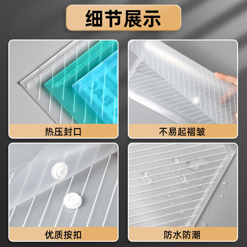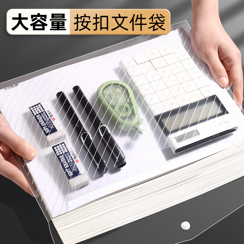 保护套大容量 晨光文具a4透明纽扣袋按扣试卷收纳袋文件袋塑料票据资料防水高中生试卷加厚拉链塑料用按钮式