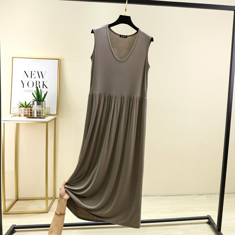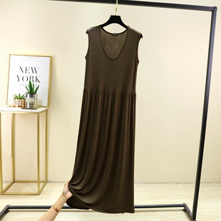 为您提供商品春夏薄款 莫代尔长裙宽松直筒裙背心打底裙外穿过膝拼接连衣裙大码的详细介绍,