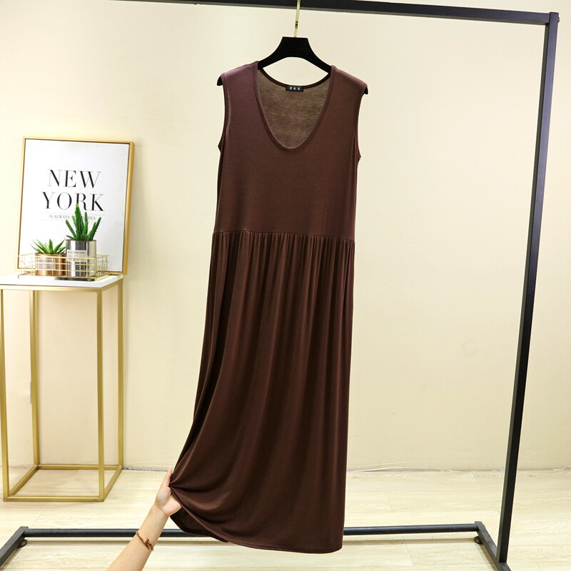 春夏薄款 莫代尔长裙宽松直筒裙背心打底裙外穿过膝拼接连衣裙大码