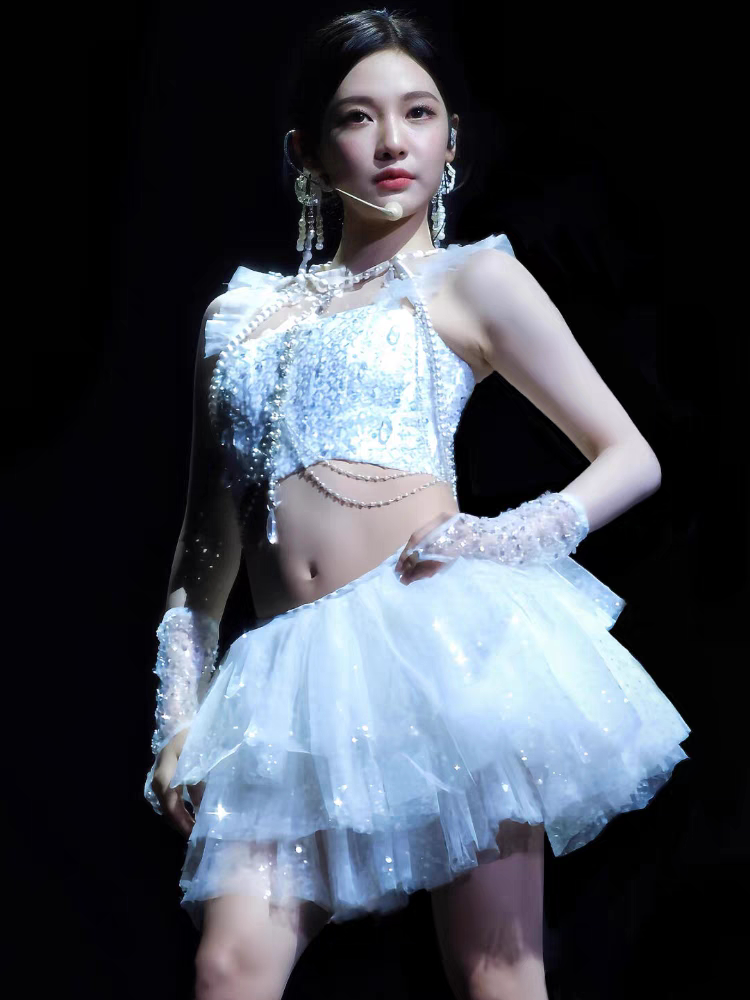 aespa女团宁艺卓同款 爵士韩舞表演出服 打歌服珍珠亮片重工舞台装