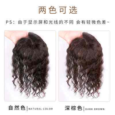 羊毛卷假发片头顶补发轻薄卷发片真发蓬松头顶头发稀薄遮白发假发