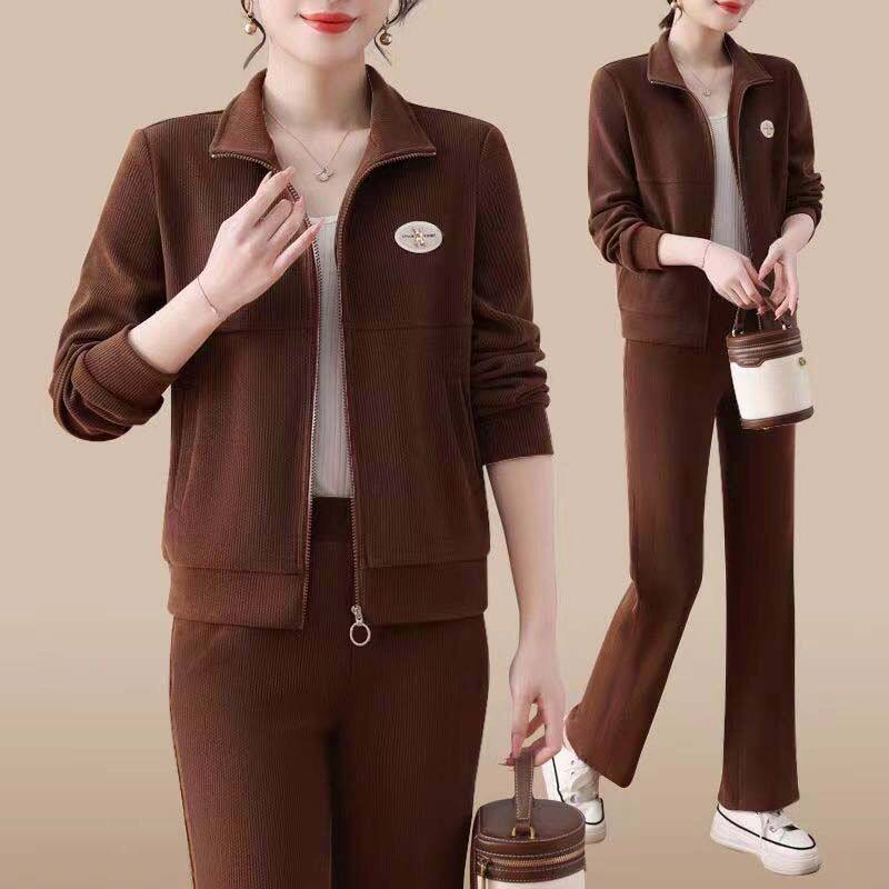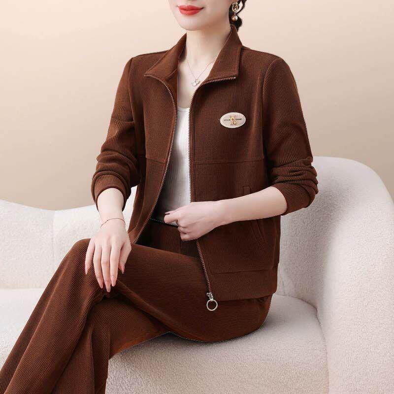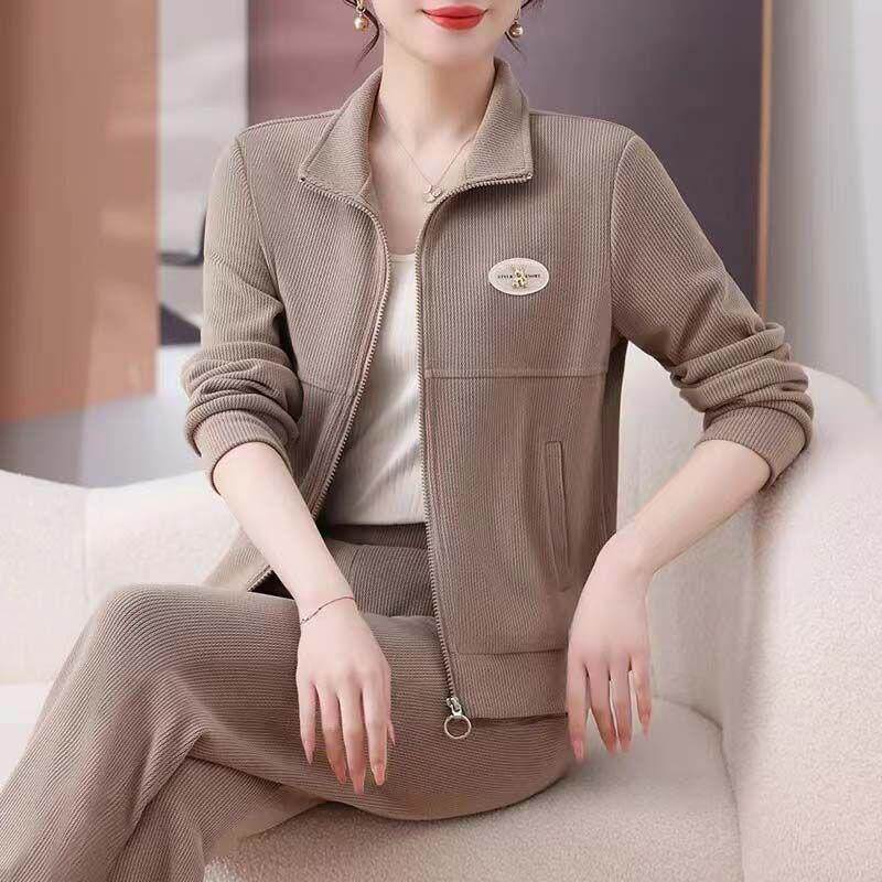 2024新款 时尚 妈妈运动服套装 女秋冬季 洋气休闲两件套 卫衣立领开衫