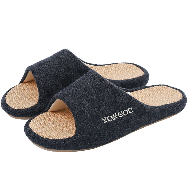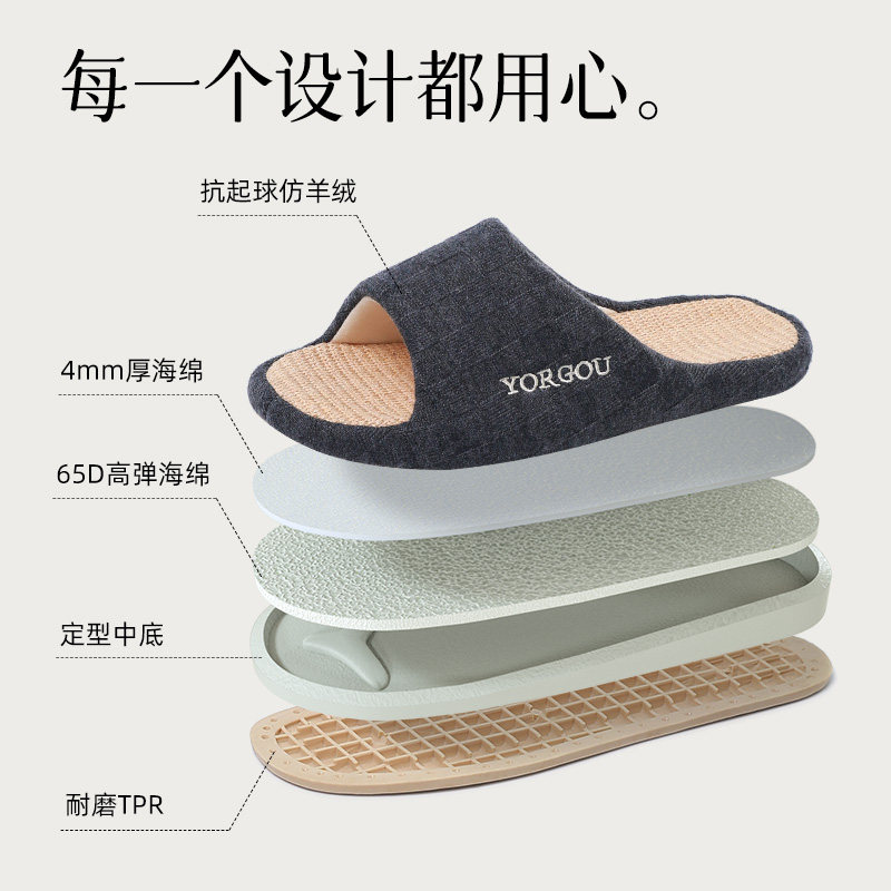 远港亚麻拖鞋 防滑防臭布艺吸汗棉麻木地板男春秋 女室内居家居四季