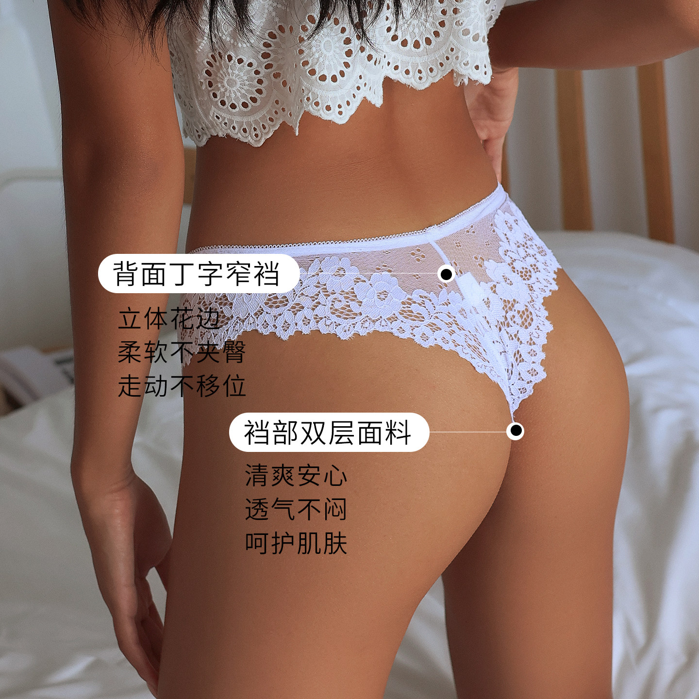 瑶瑶闺蜜欧美风蕾丝内裤 头 女性诱惑透明纯欲低腰半包臀少女丁字裤