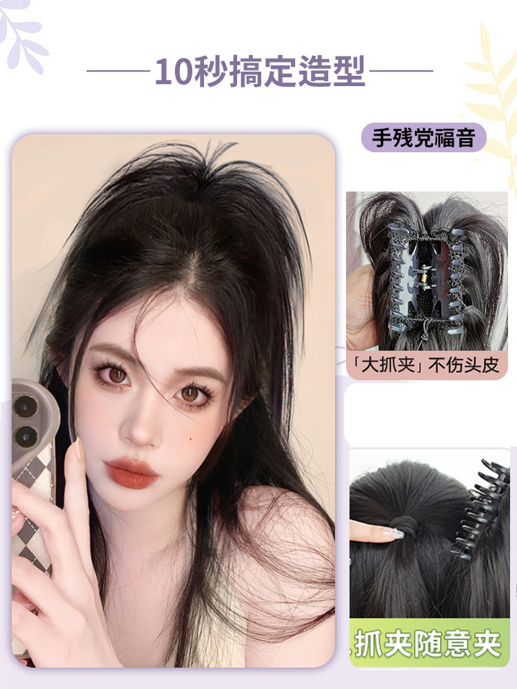 喷泉高马尾辣妹假发网红辫子蓬松增发量 全真发瀑布半扎马尾抓夹式