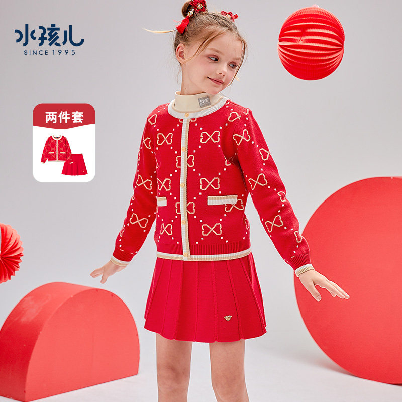 保暖儿童针织开衫 线衣毛衣裙子两件套 大童秋冬装 水孩儿女童套装由