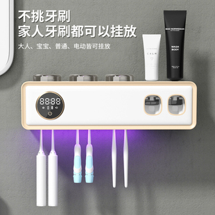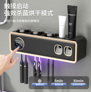 紫外线杀菌烘干电动牙杯双牙膏收纳置物架子 智能牙刷消毒器壁挂式