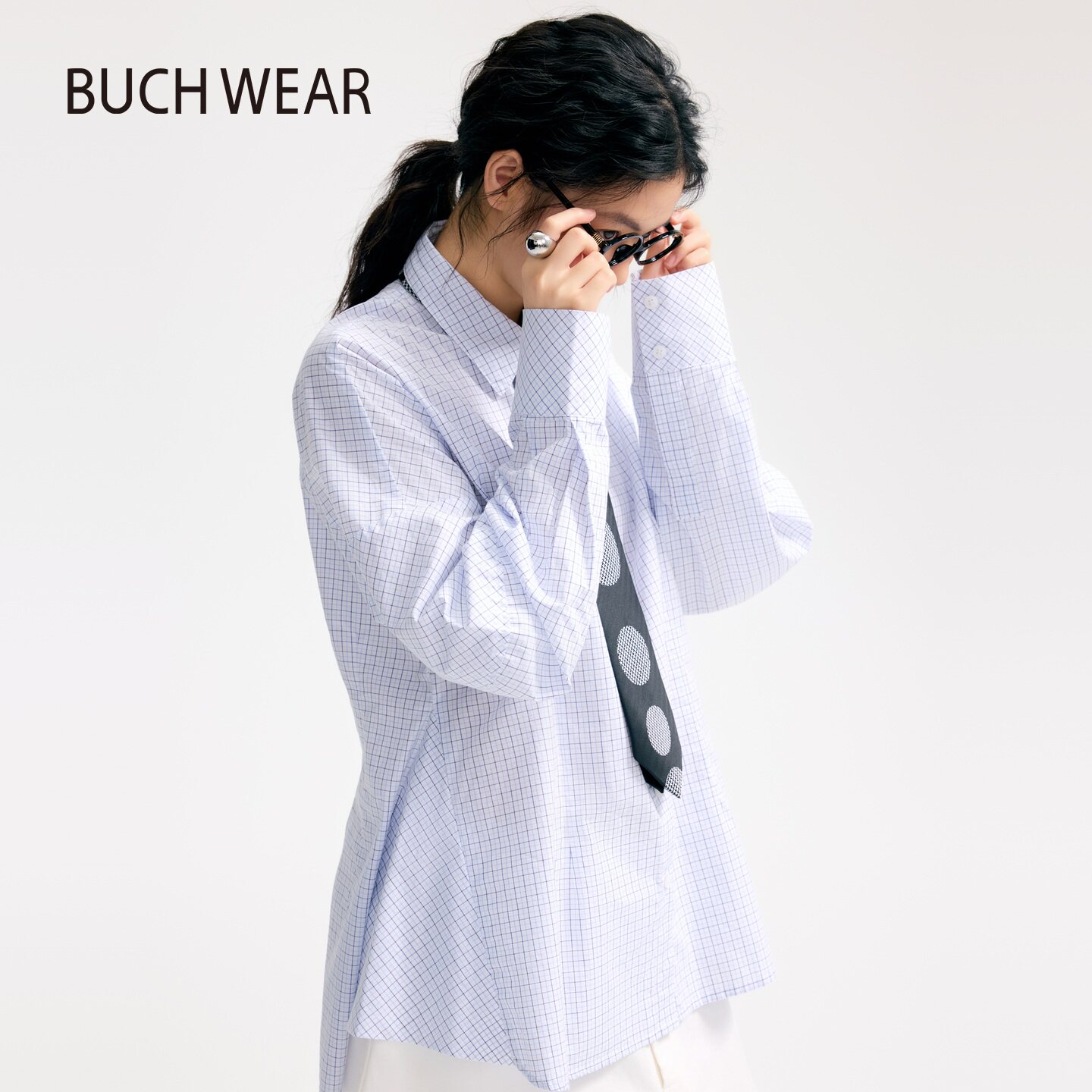 新款 BUCH WEAR衬衫 女2026春季 上衣589349 格纹棉质细格纹羊腿袖由