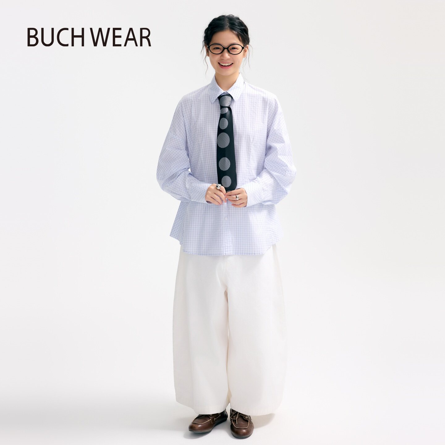 新款 BUCH WEAR衬衫 女2026春季 上衣589349 格纹棉质细格纹羊腿袖
