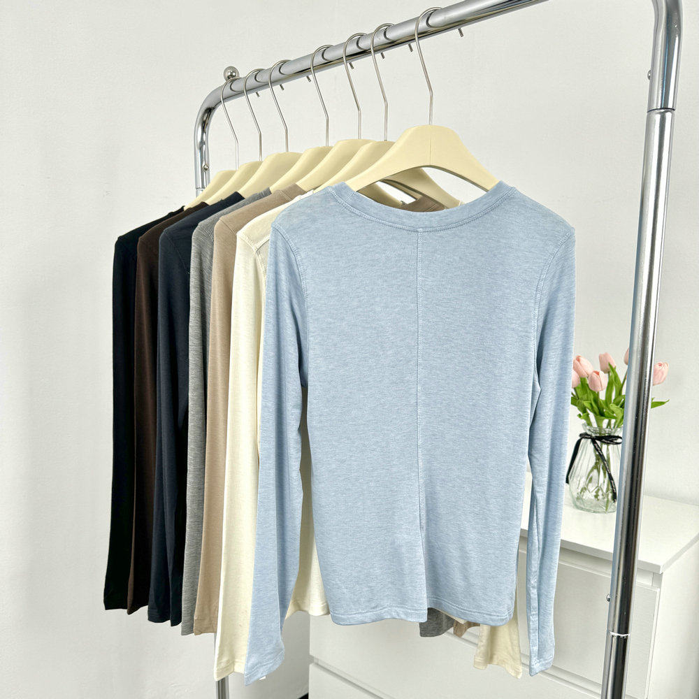 2026春秋正肩百搭上衣圆领长袖 T恤女 女 软糯亲肤天丝莱赛尔打底衫