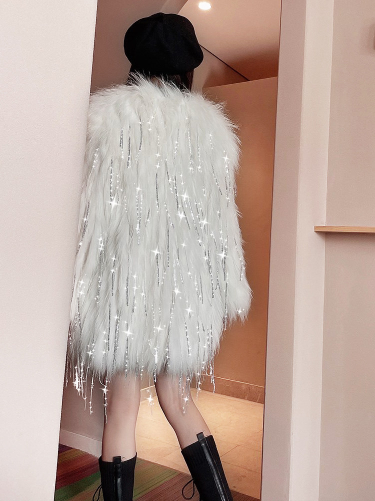显瘦中长款 毛毛外套 修身 高端貉子毛皮草女2025冬流苏亮片气质时尚