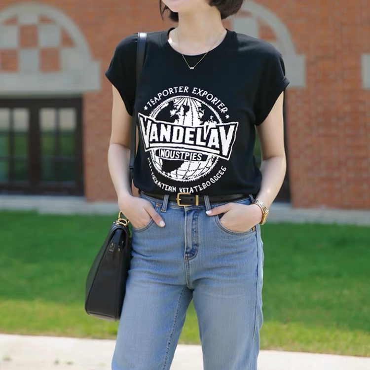 设计针织衫 大洪官方严选店月半湾夏季 女 短袖 印花宽松美式 新品 时尚