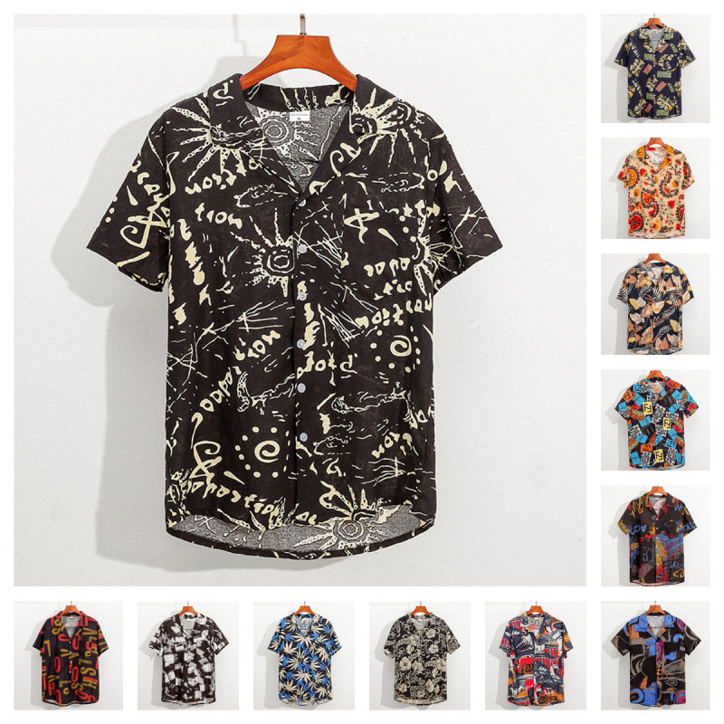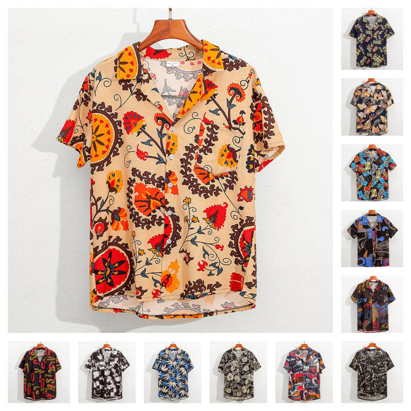 花衬衫 2022夏季 夏威夷海边度假衬衣 短袖 棉麻面料男士 新款 外贸欧码