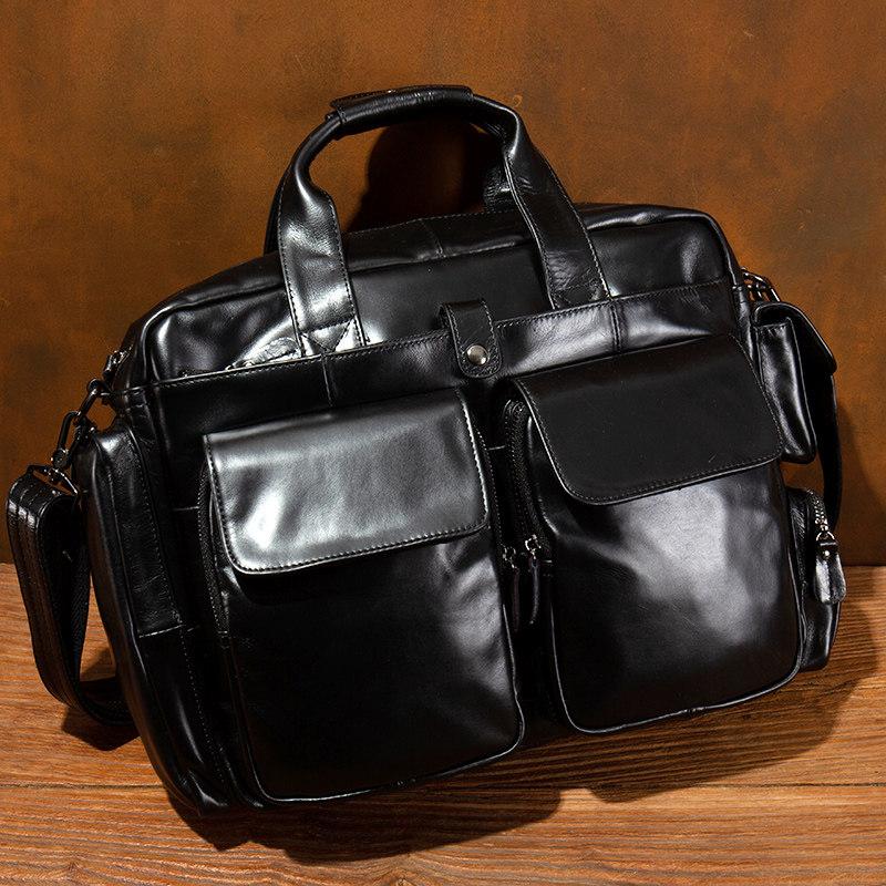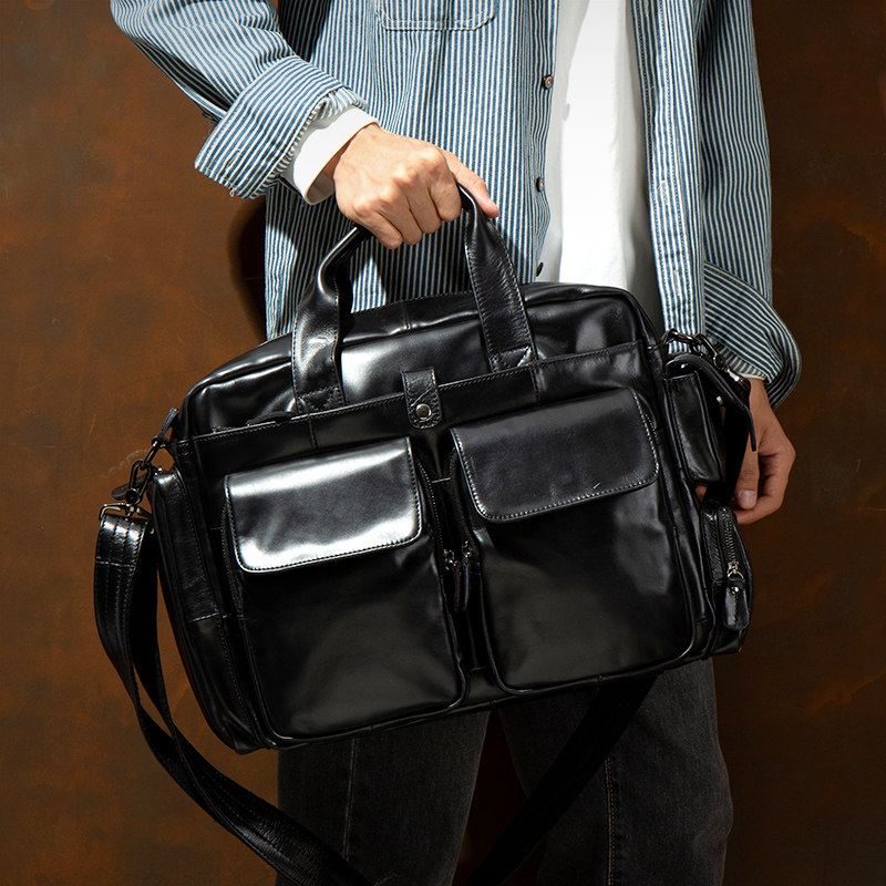 真皮手提包大容量头层牛皮公文包出差旅行包袋 慢时光商务通勤男士由