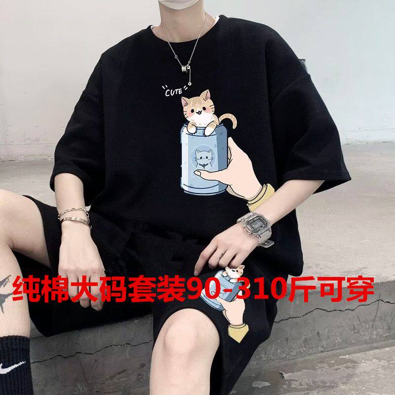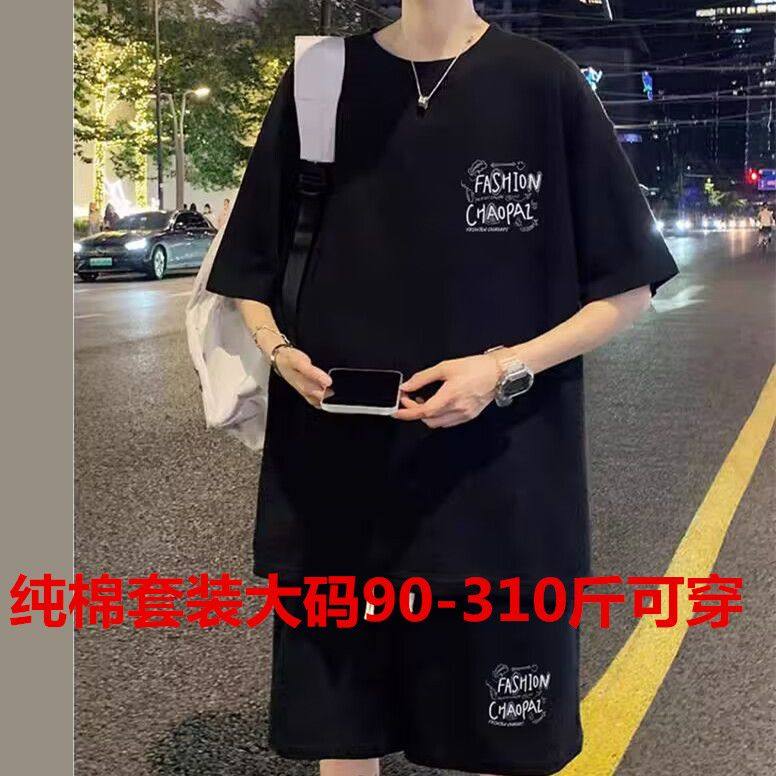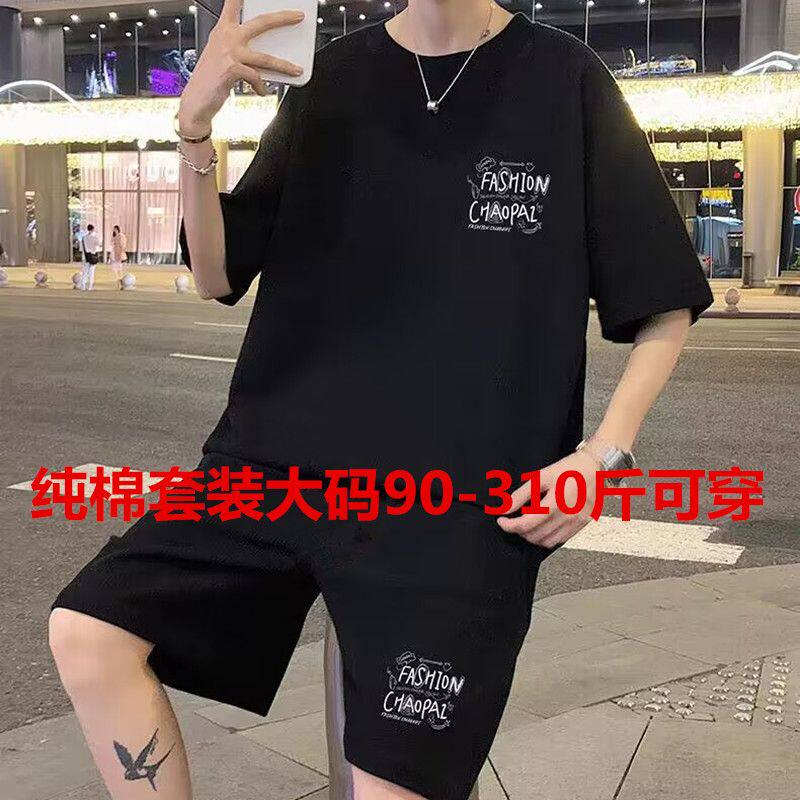 两件套装 纯棉大码 短裤 休闲运动2025新款 搭配一套男装 夏季 短袖 男士