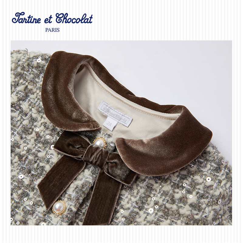 tartineetchocolat法国巧克力童装 秋冬女童连衣裙两件套装
