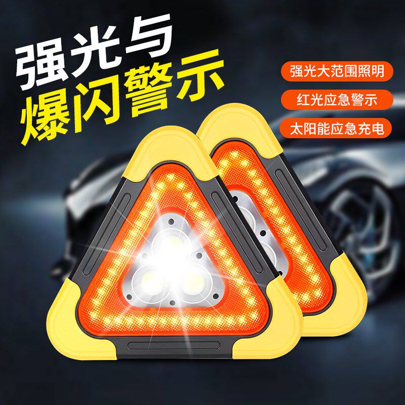 三脚架警示牌太阳能爆闪汽车载闪光灯尾灯警示灯防追尾应急三角架