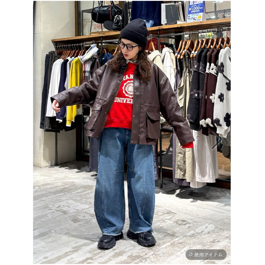 pusumede 复古PU皮衣外套女宽松小个子机车夹克上衣 现货7.5折
