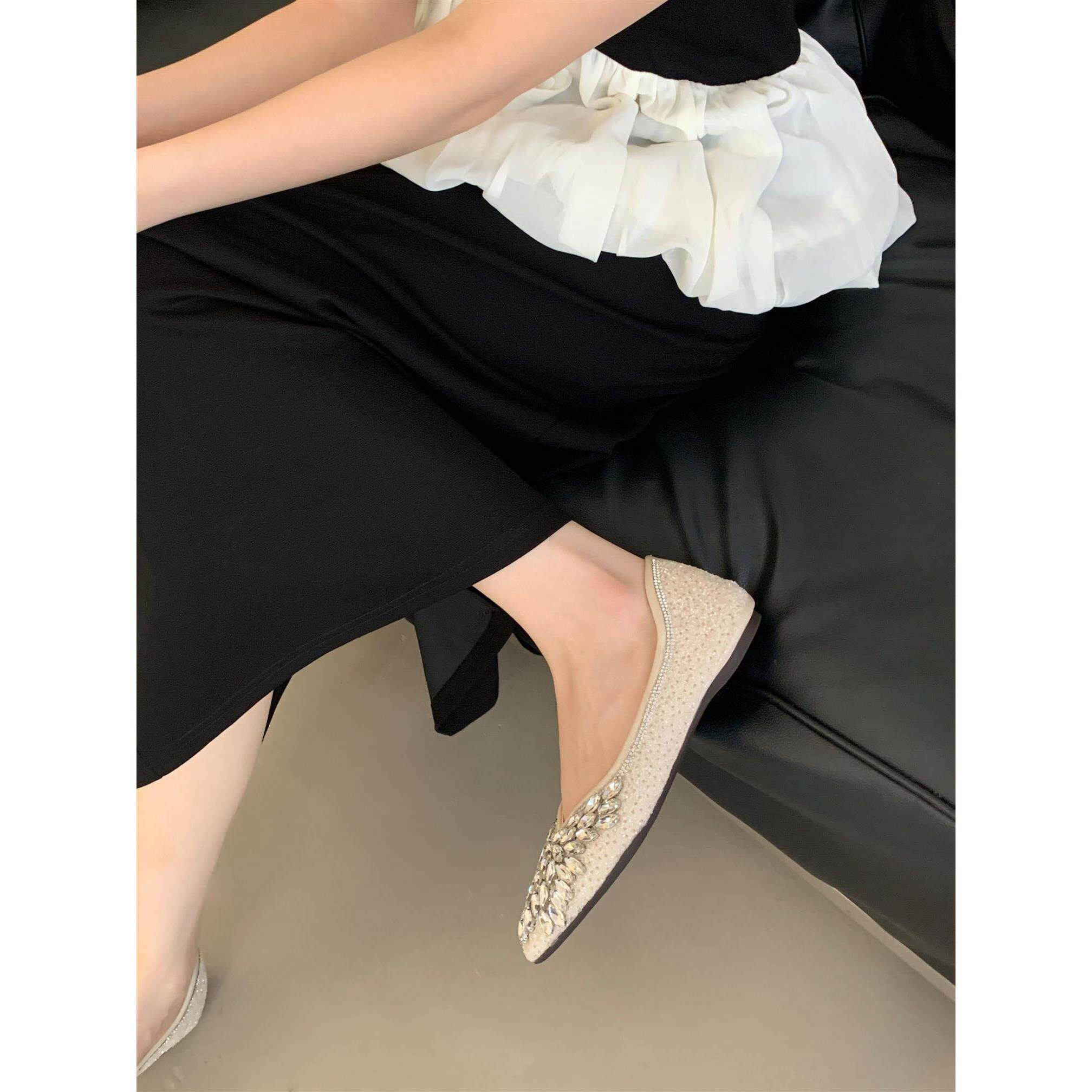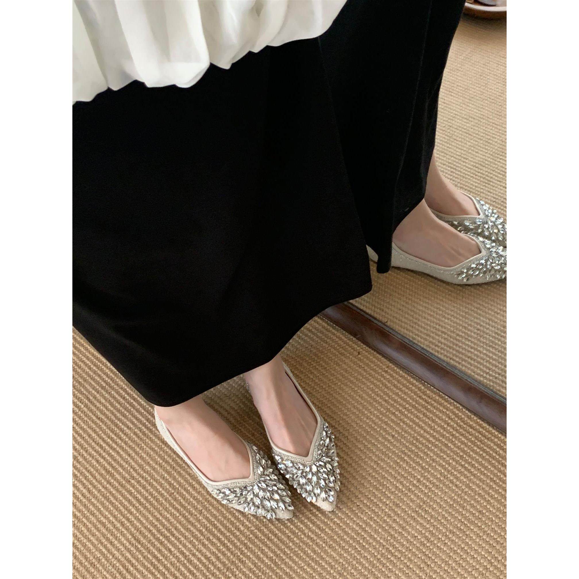 2025新款 外穿百搭尖头水钻单鞋 女平底百搭瓢鞋 一脚蹬凉拖女 大码由