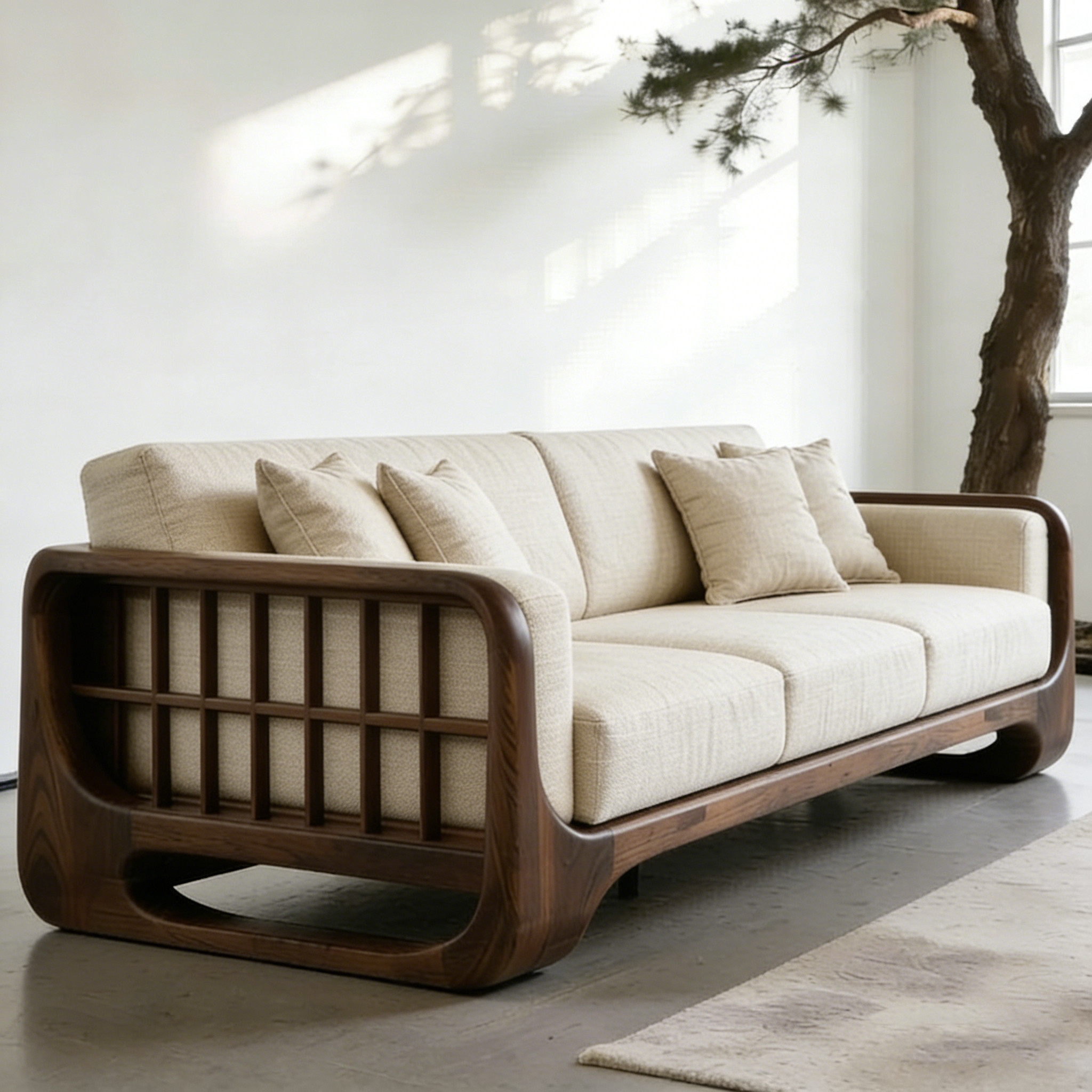 宋式 沙发轻奢高级全套家具 美学实木沙发组合客厅直排沙发新中式