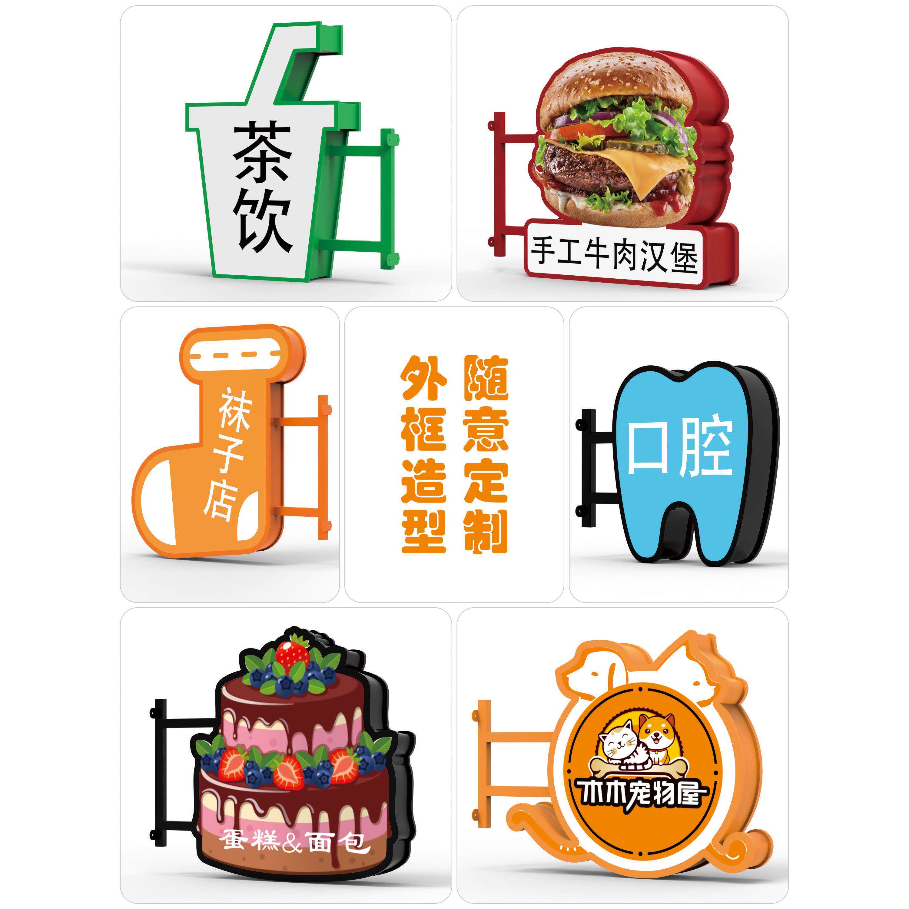 广告牌侧招牌定做 亚克力Led铁艺户外防水双面吊挂圆形灯箱挂墙式由
