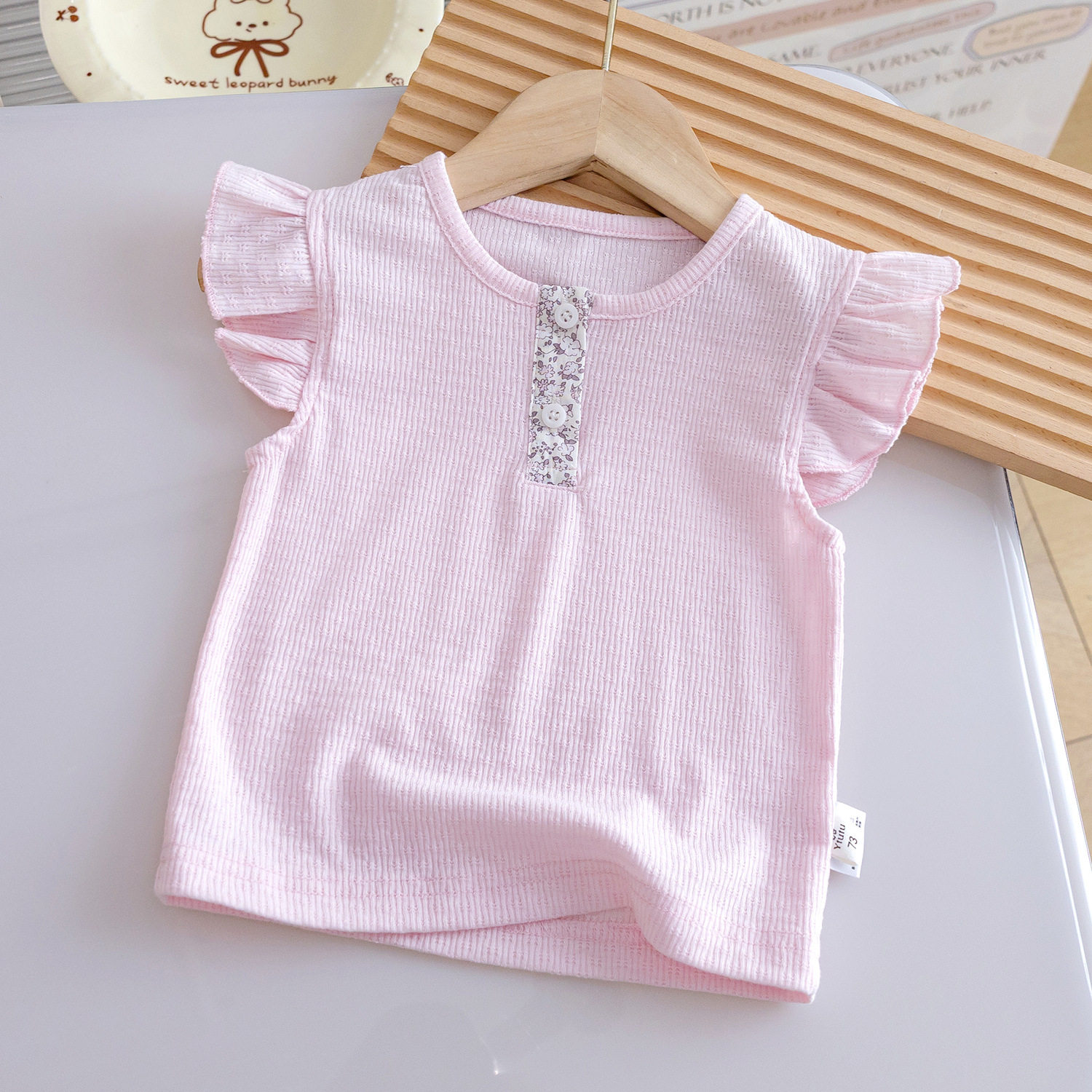 背心T恤洋气碎花花苞短裤 女童时髦韩版 两件套3 飞袖 夏季 套装 26新款由