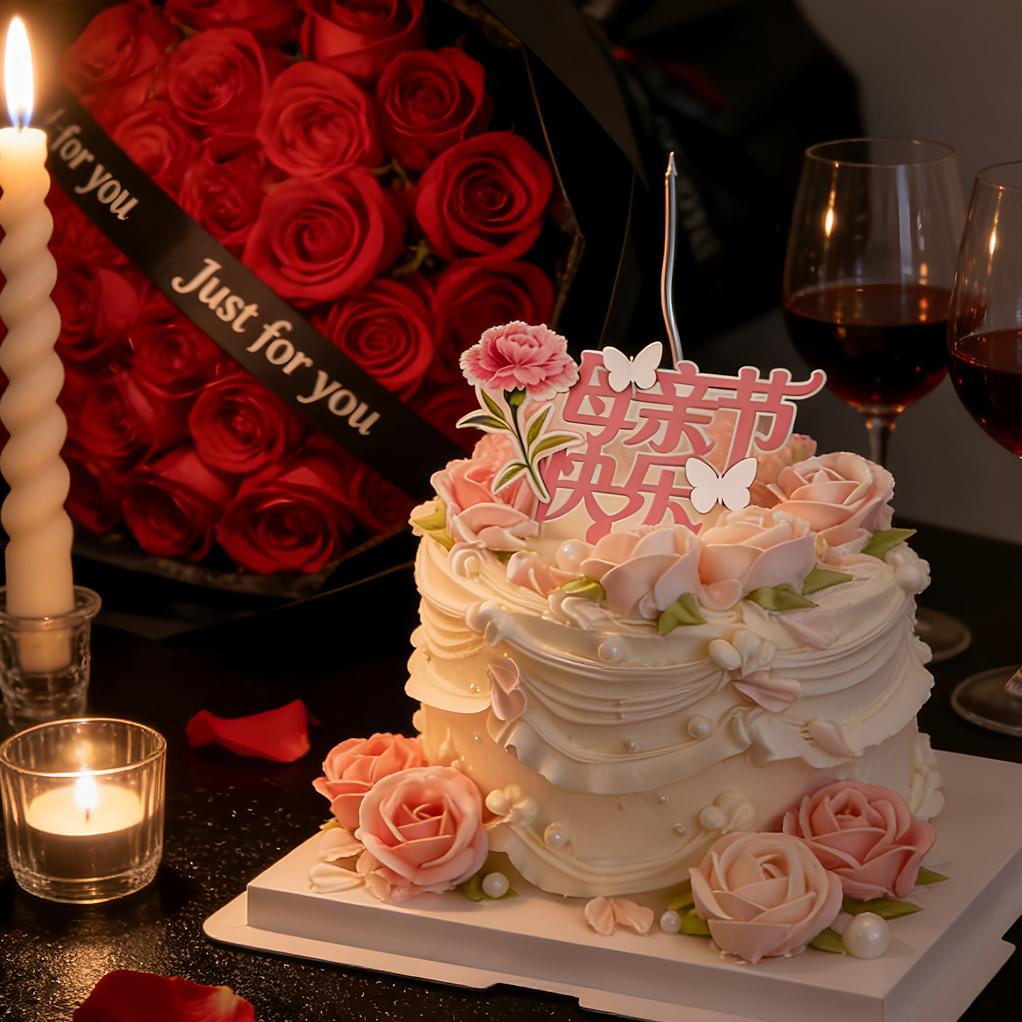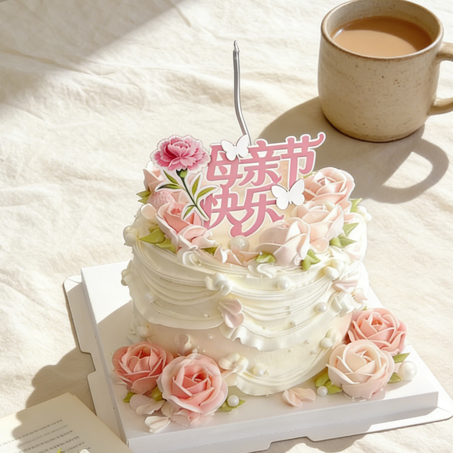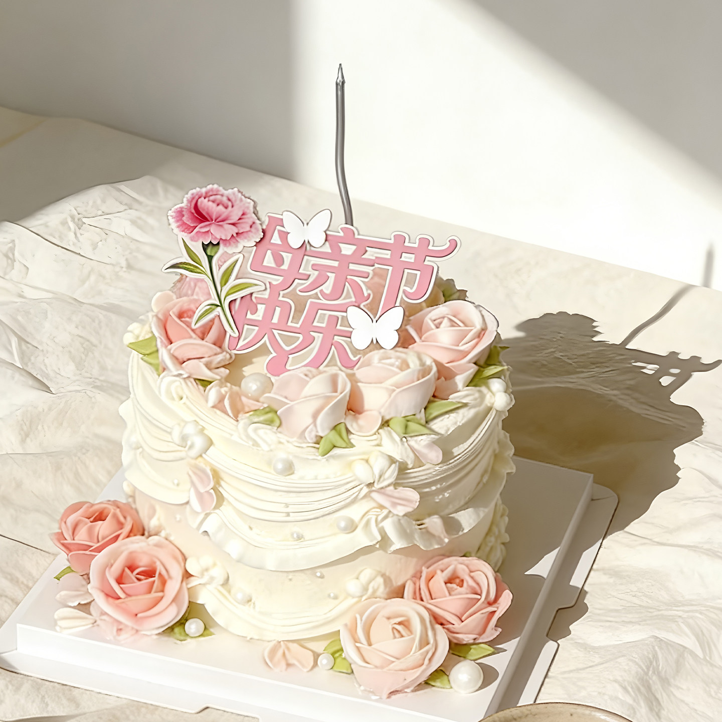 饰插牌妈妈节日甜品台插件 双层印刷亚克力康乃馨母亲节快乐蛋糕装由