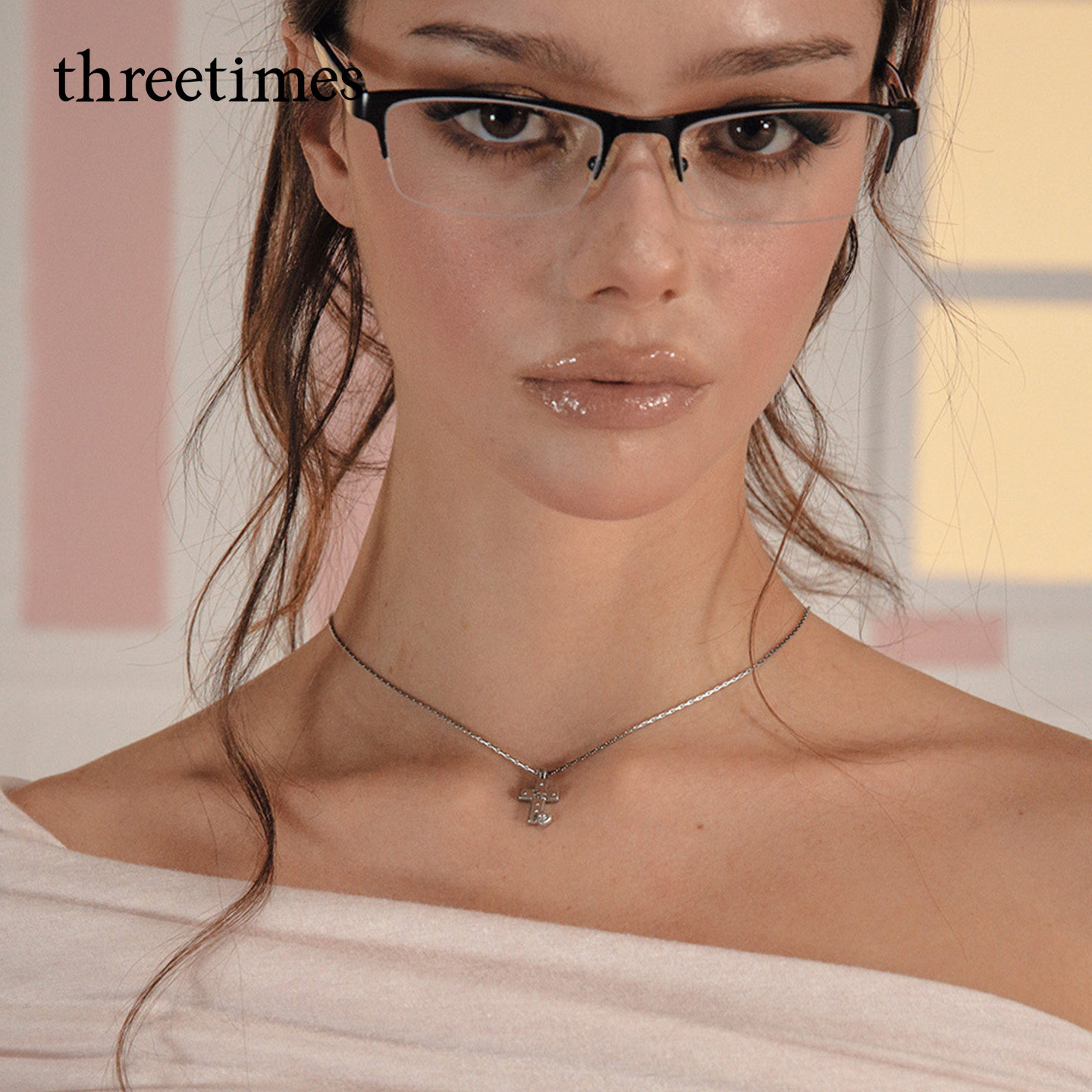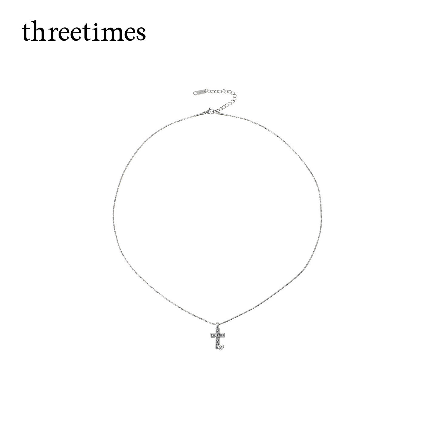 threetimes2026新款 百搭潮 精致小巧十字架吊坠项链女银饰复古时尚