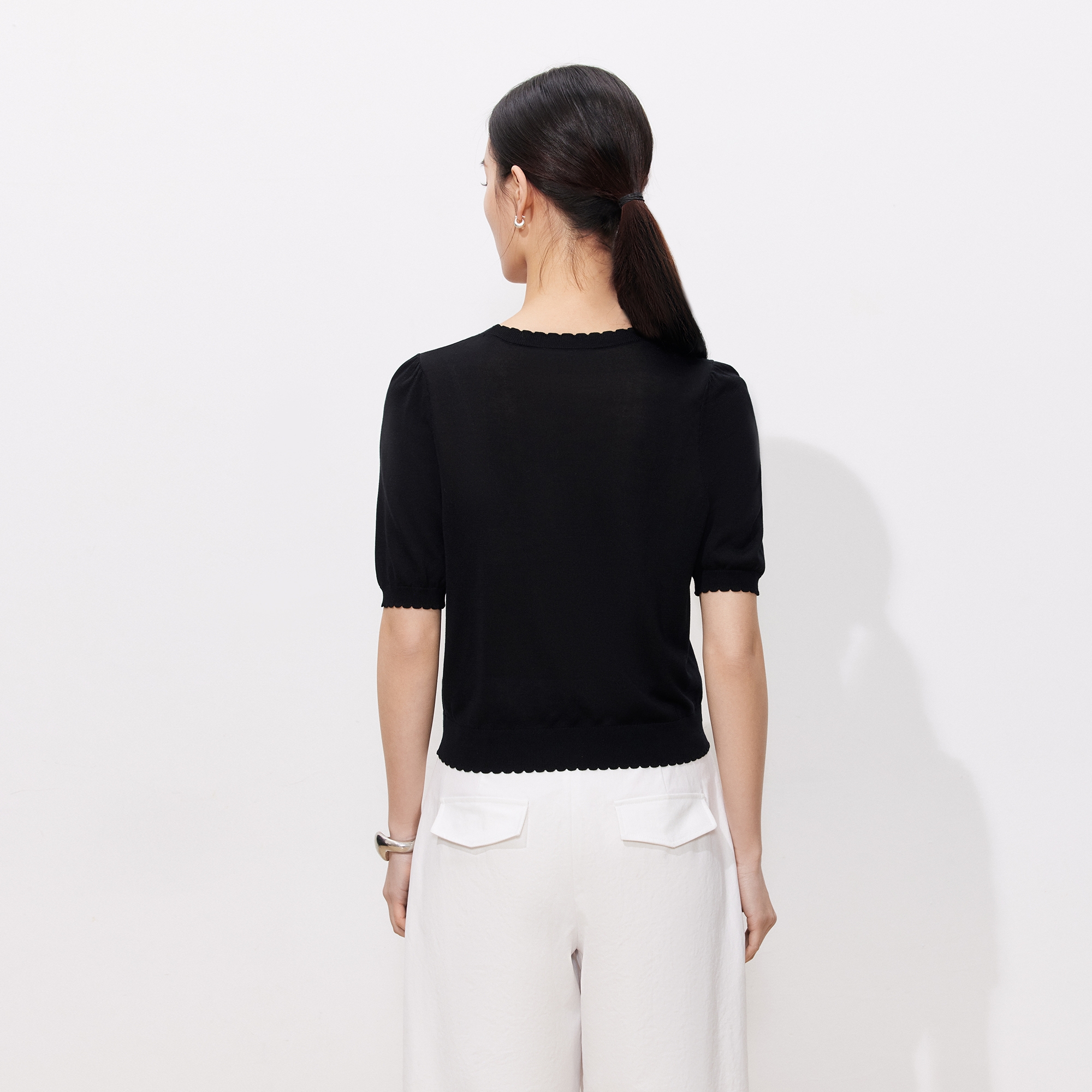 为您提供商品新款 Vero Moda针织衫 2026夏季 上衣 莱赛尔花卉提花木耳边泡泡短袖的详细介绍,