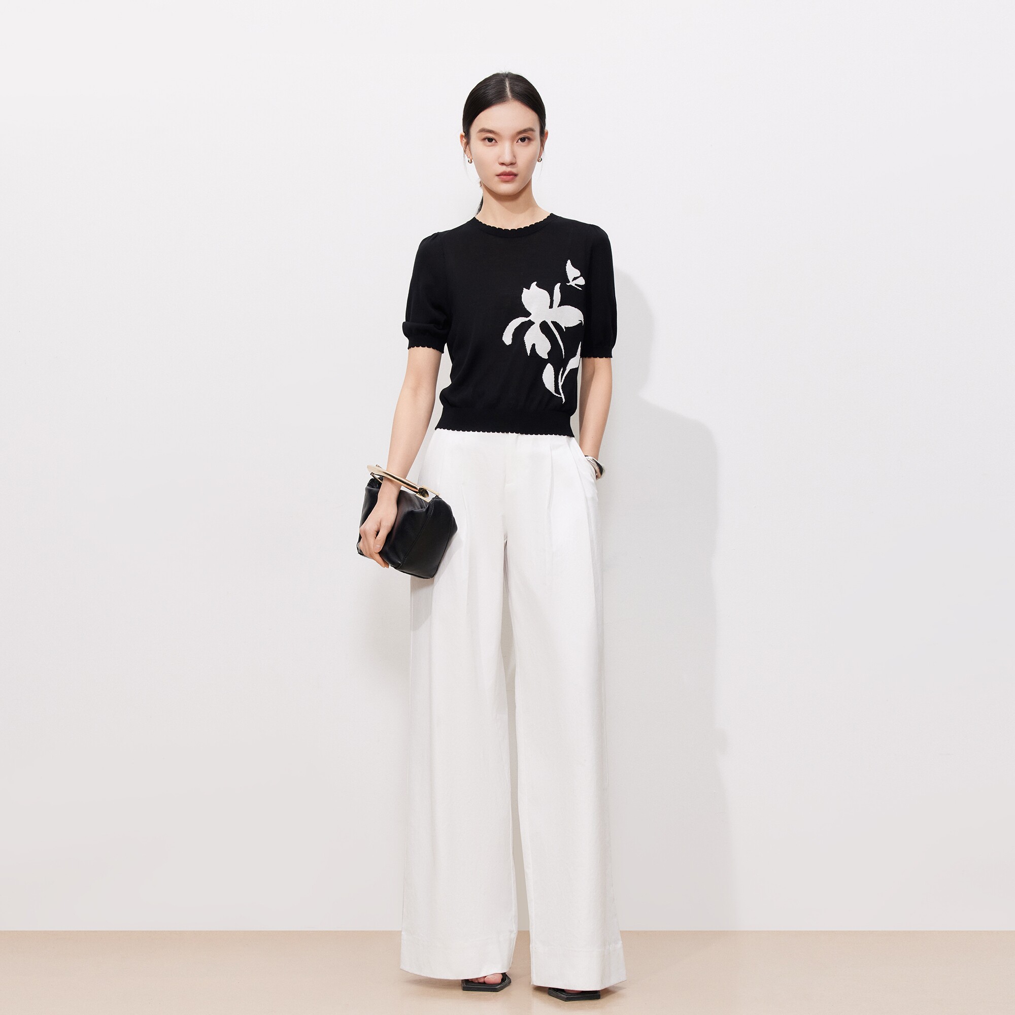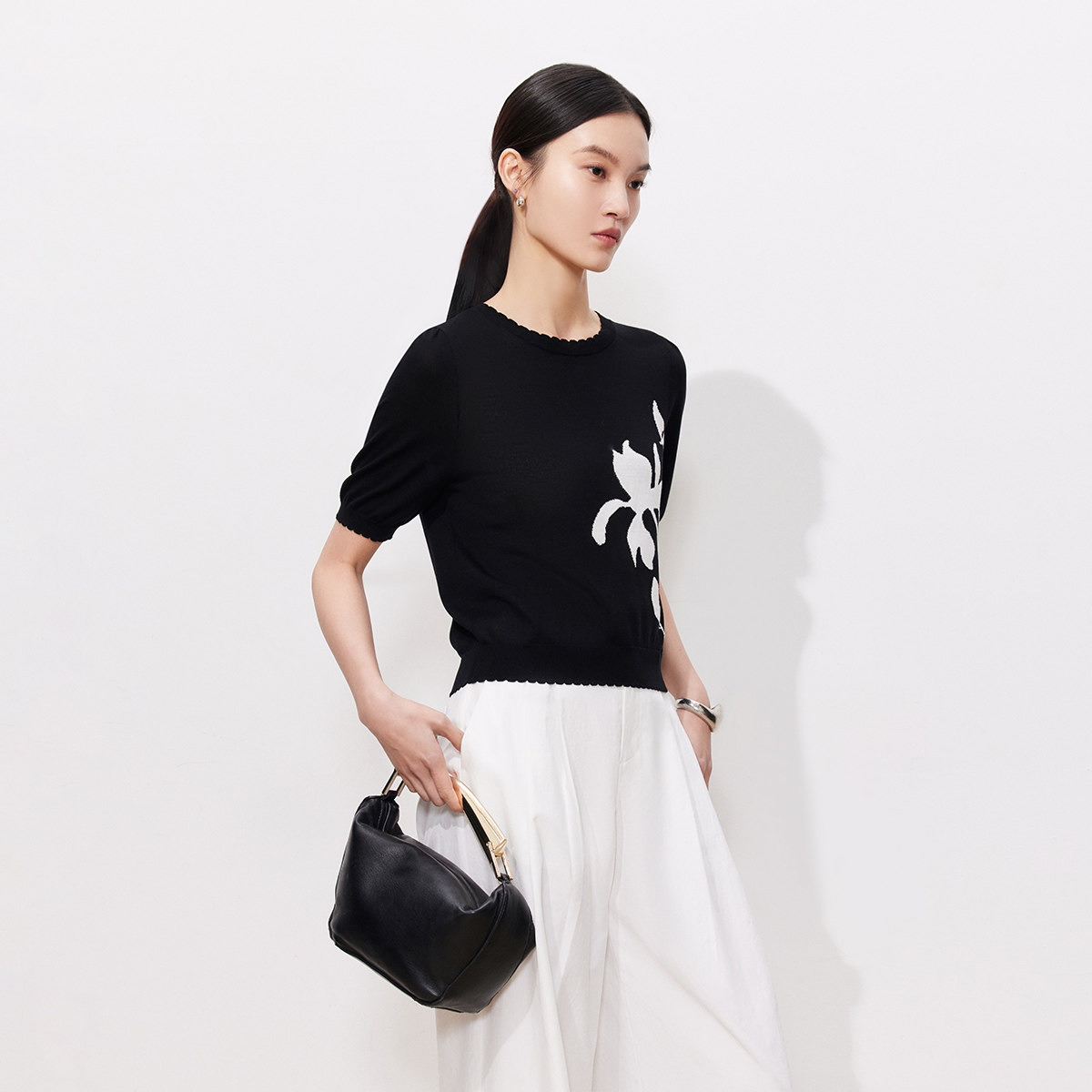 新款 Vero Moda针织衫 2026夏季 上衣 莱赛尔花卉提花木耳边泡泡短袖由