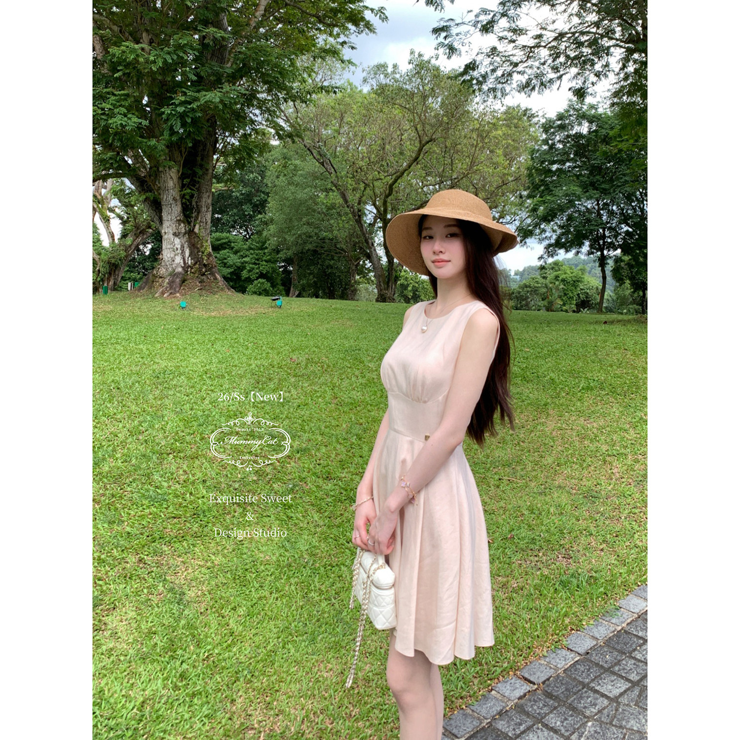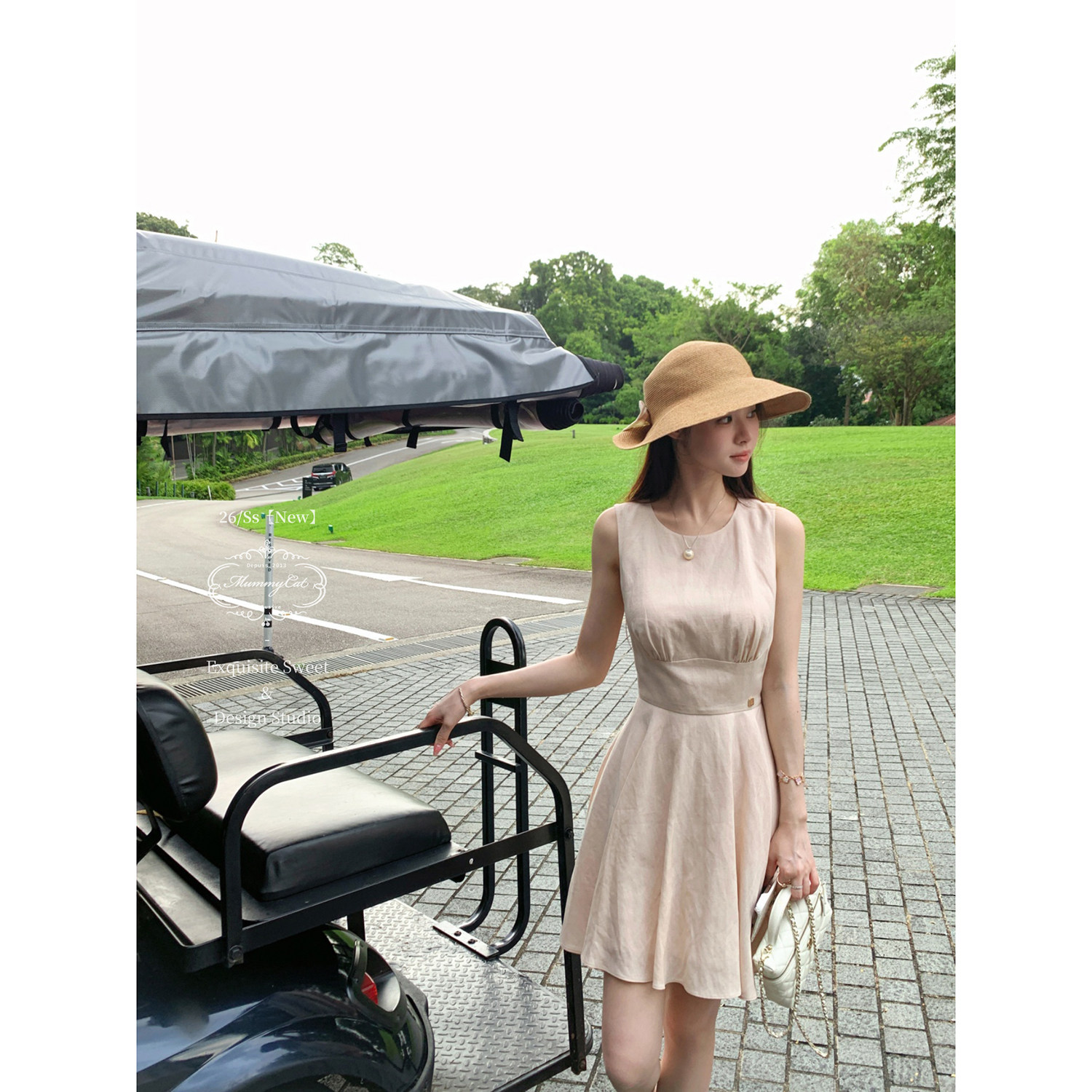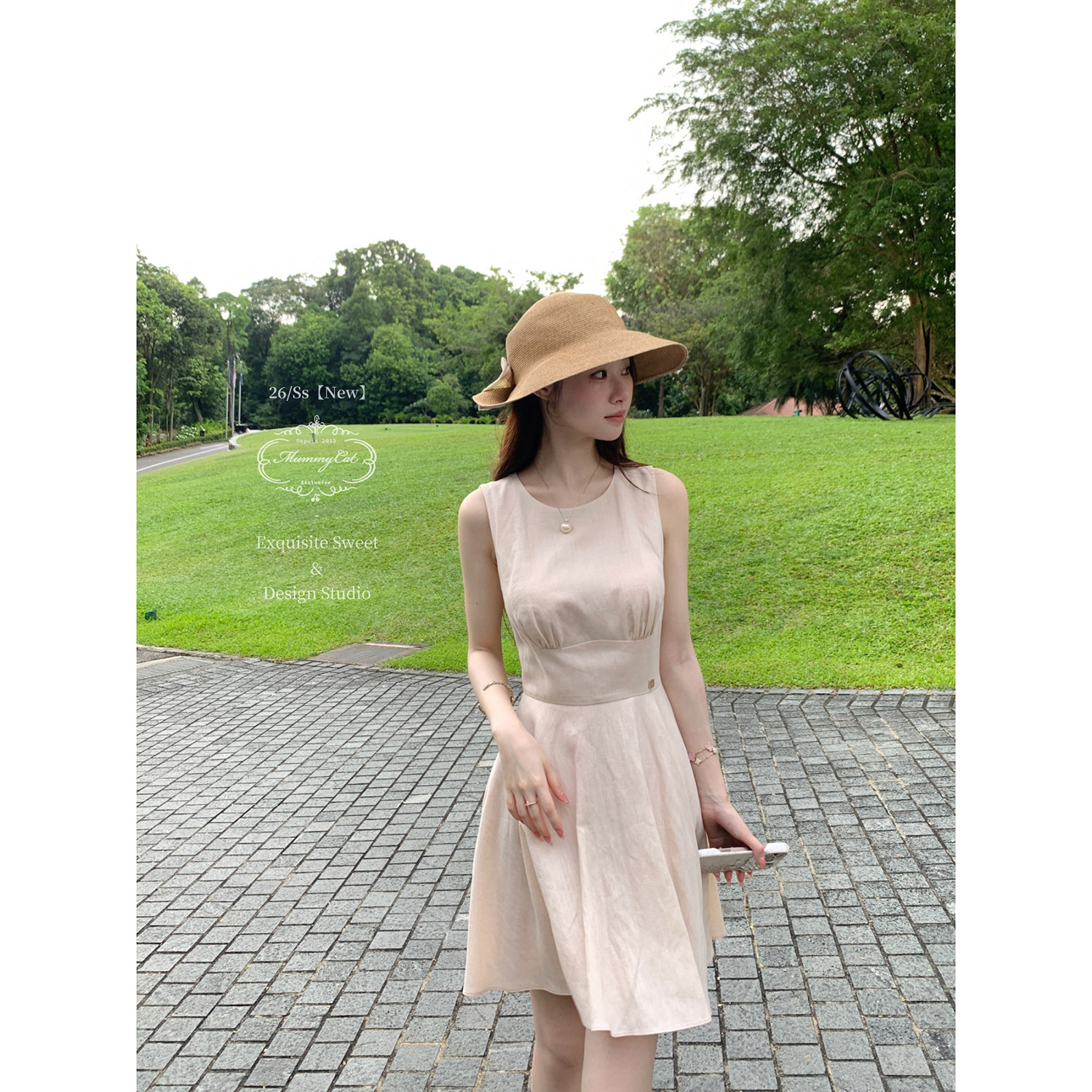 莱赛尔亚麻收腰无袖 MummyCat下蛋喵 氧气小花 26新品 连衣裙 短款由