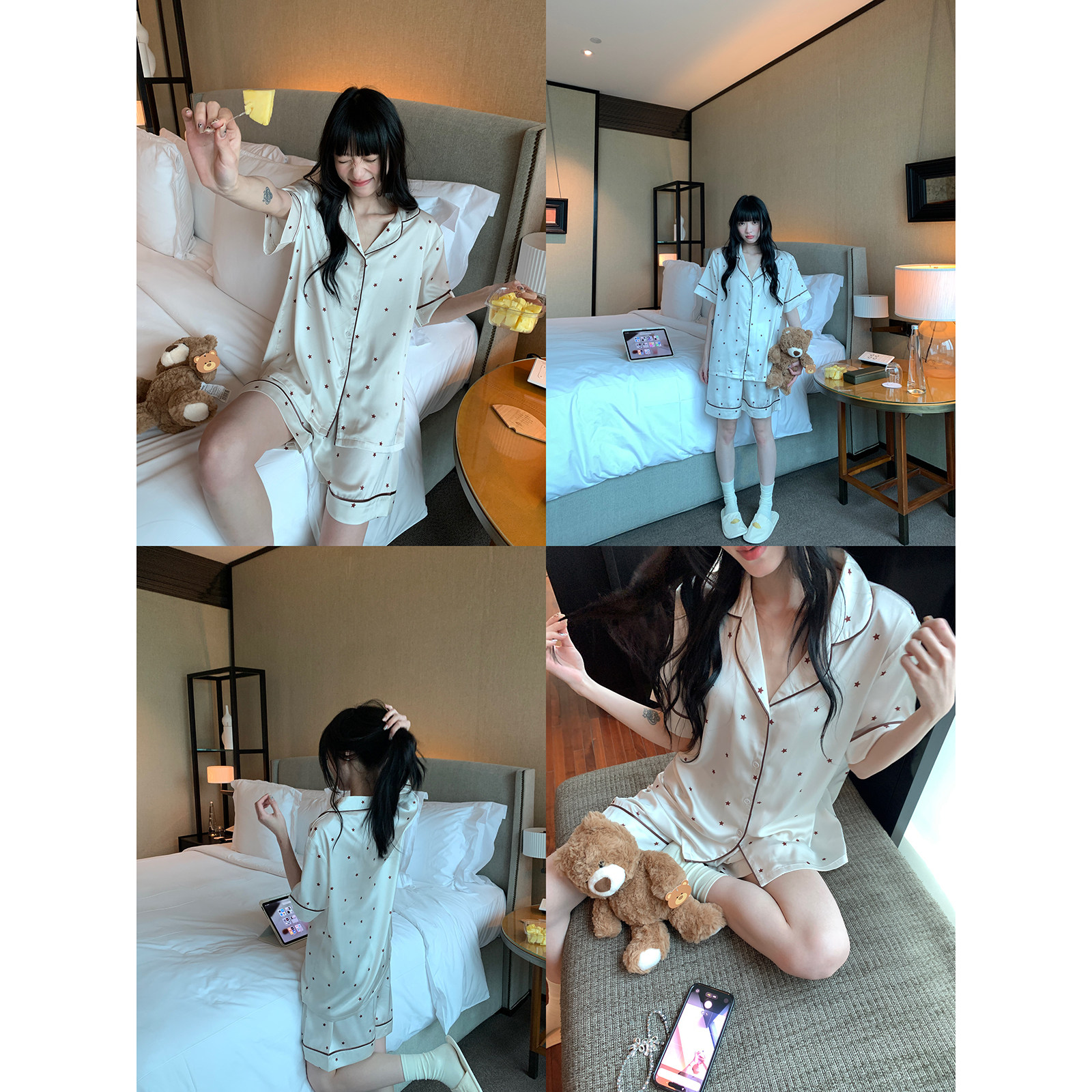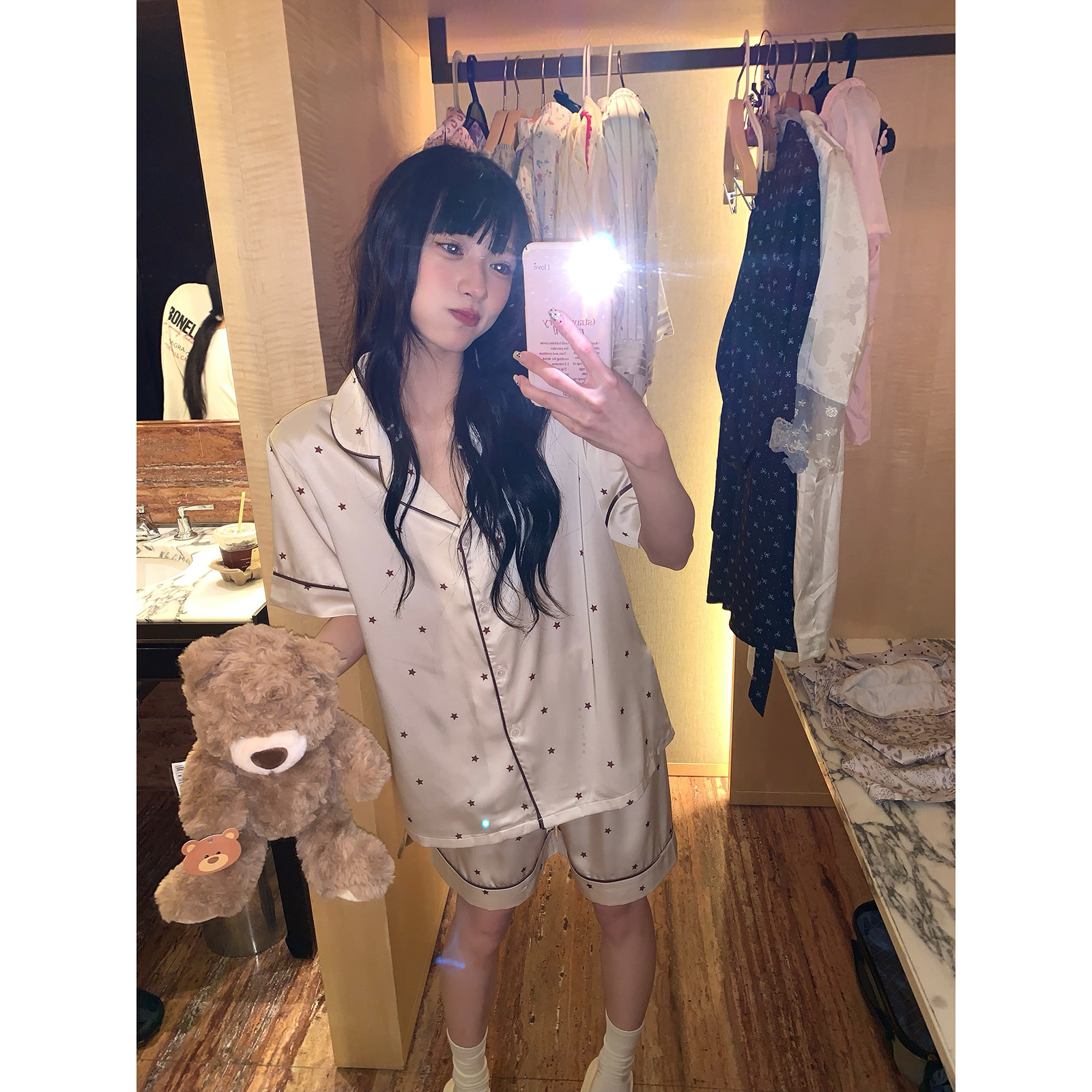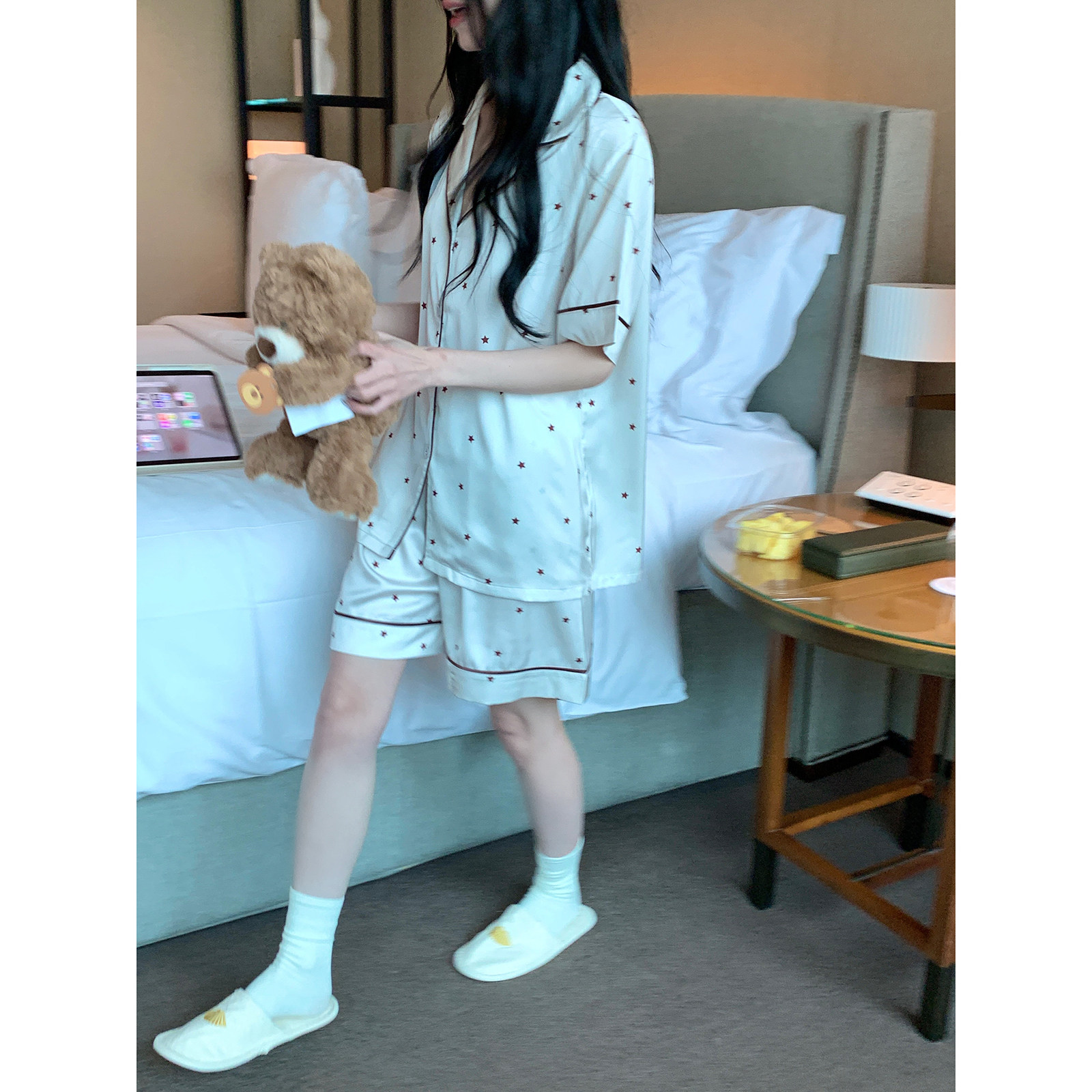 短袖 馨帮帮Homedress 星星印花冰丝睡衣女夏季 薄款 甜美家居服套装