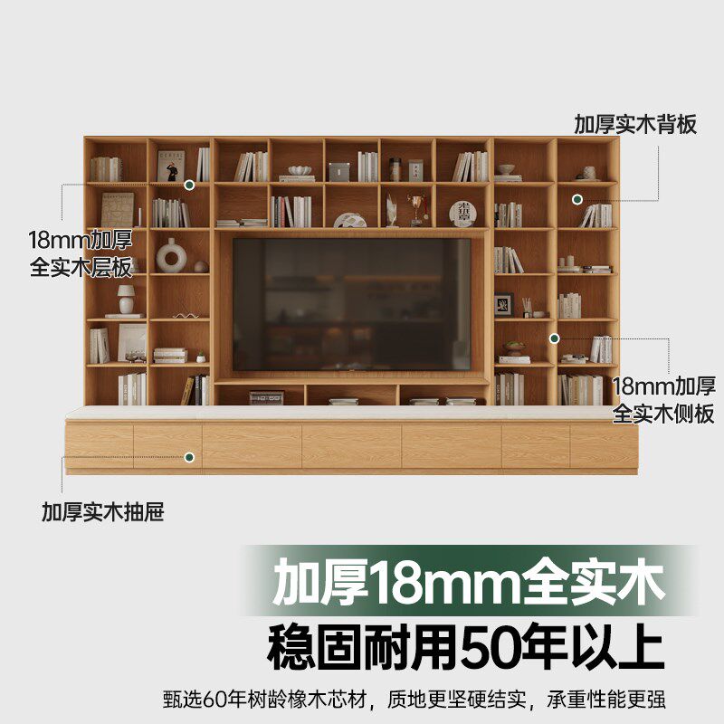 为您提供商品橡木定制客厅电视柜满墙卡座一体书柜到顶全实木摆件整墙展示书架的详细介绍,